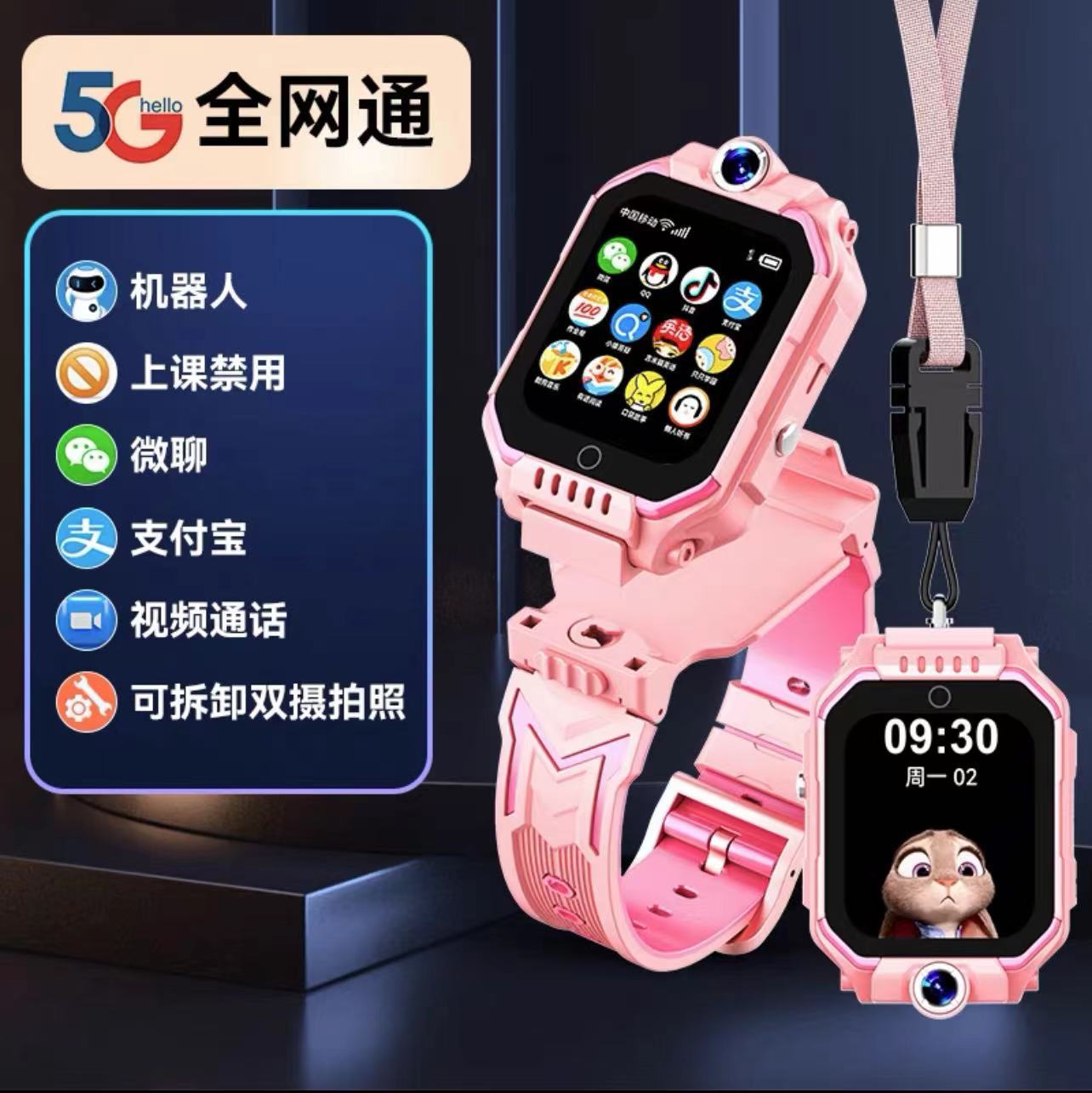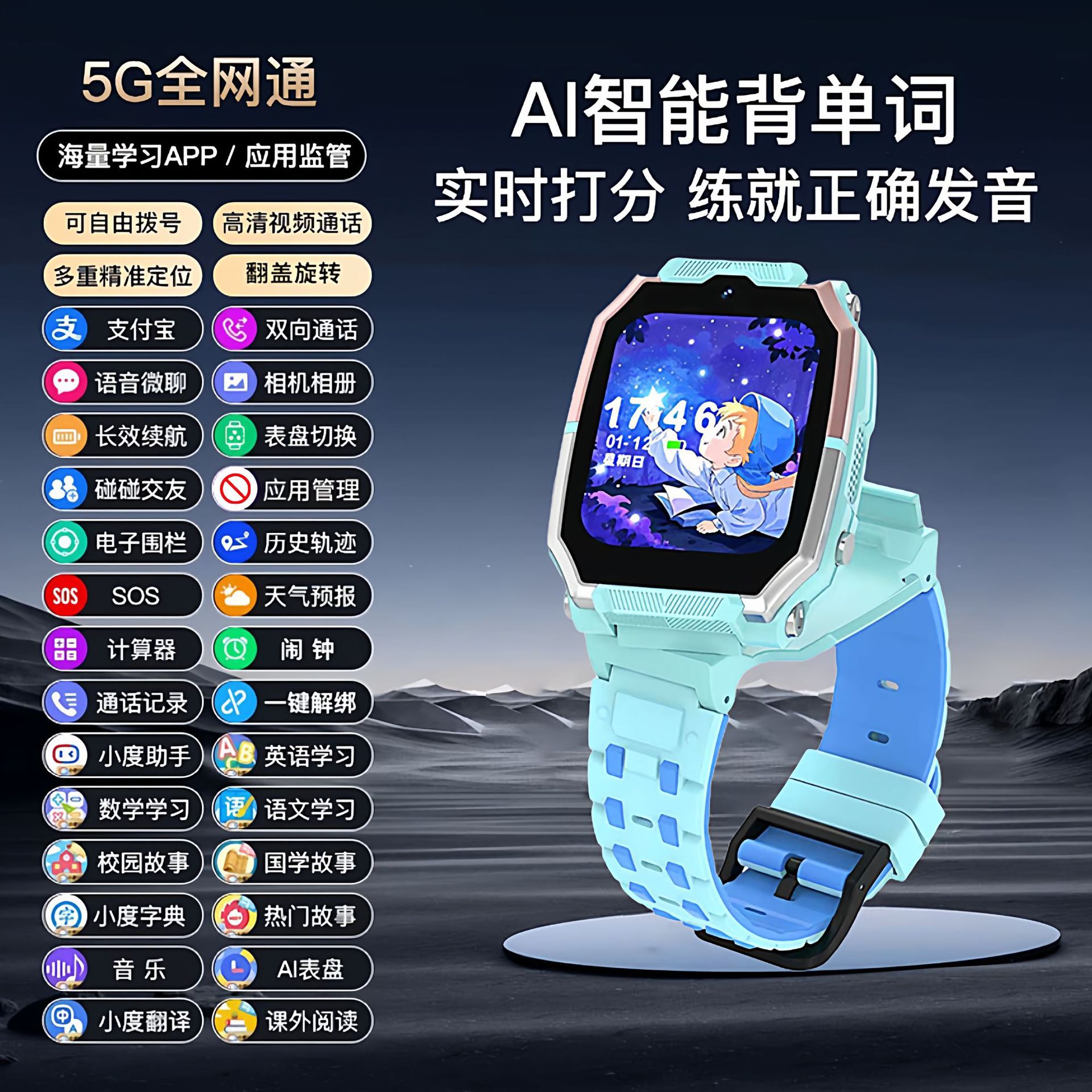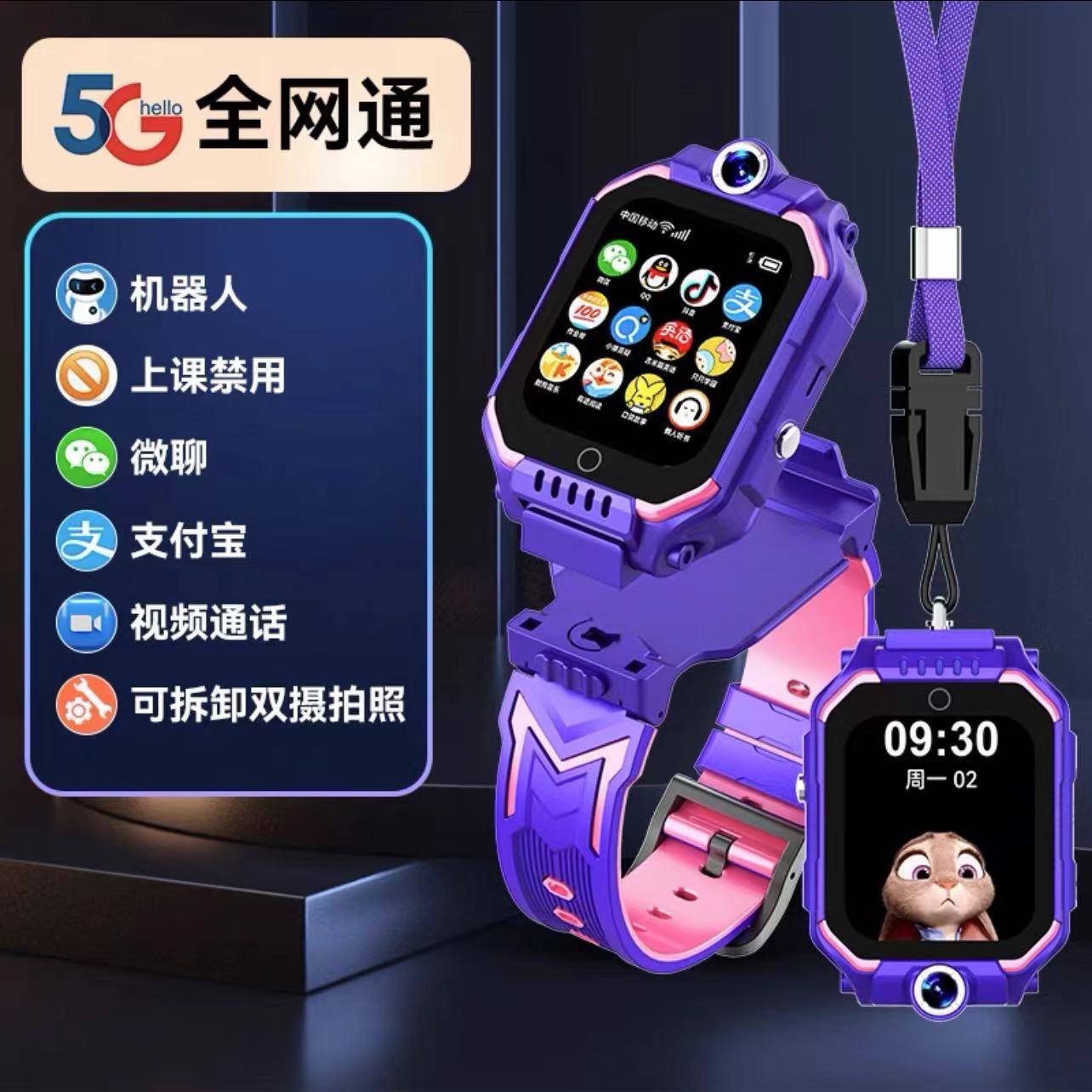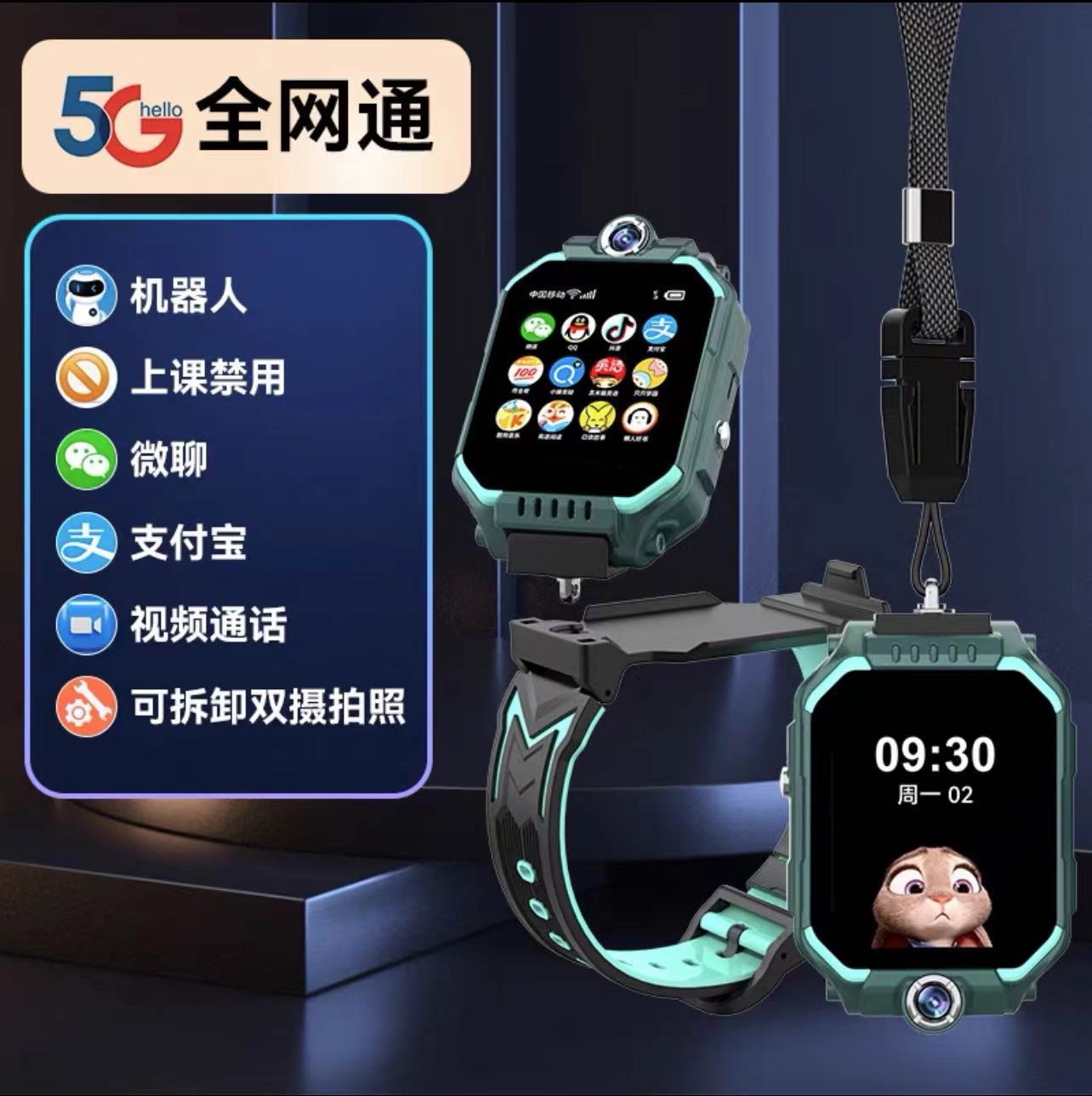 • 녹색 5G 풀 네트워크 360°회전 + 영상 통화 + 긴 대기 시간 + 위치 추적 + 학습 보조