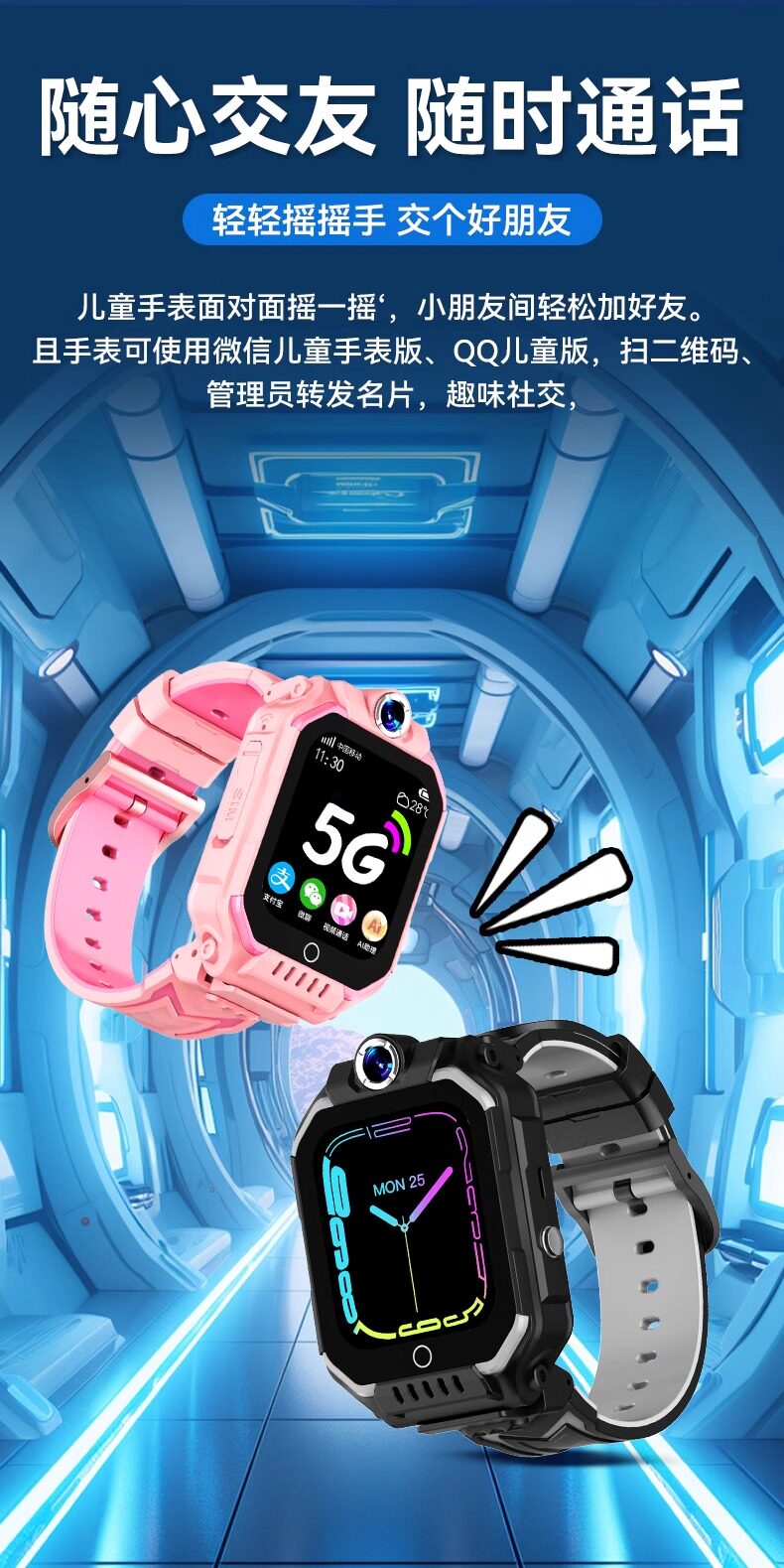• 블루 5G 풀 네트워크 360°회전 + 영상 통화 + 긴 대기 시간 + 위치 추적 + 학습 보조