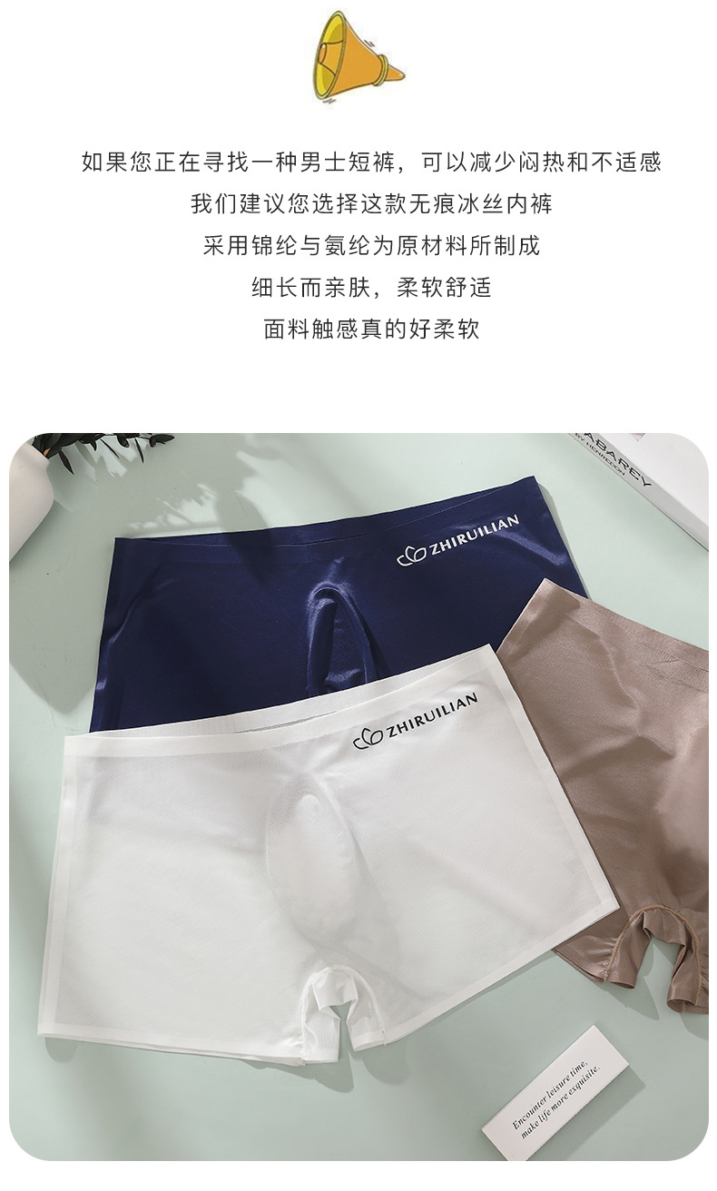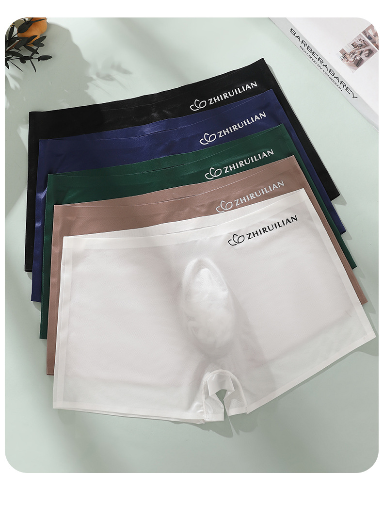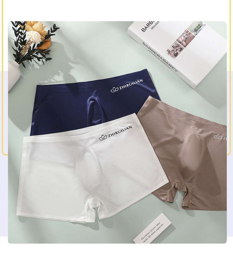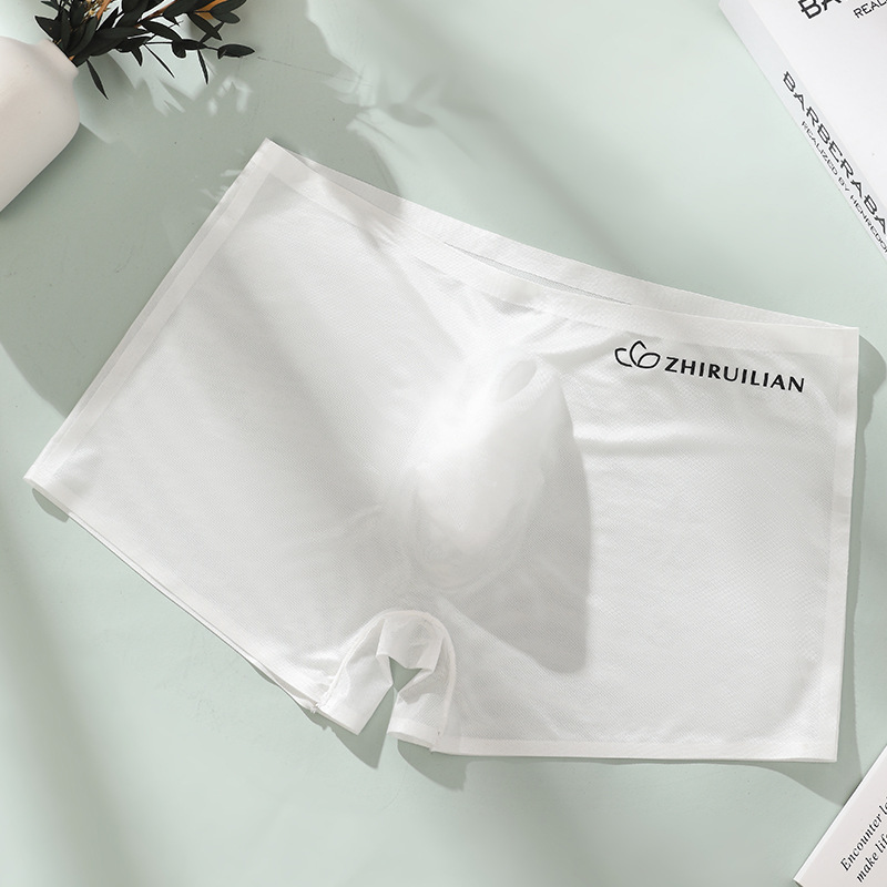 사계절 착용 가능한 3D 볼록백, 섹시한 레터링, 반투명 아이스 실크 얇은 남성 속옷, 사각팬티, 반바지스토어 가기