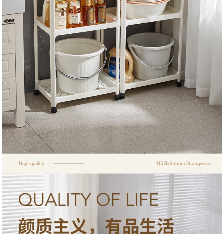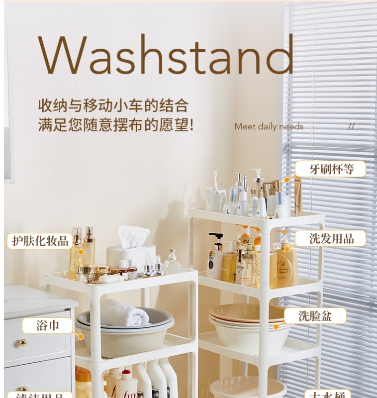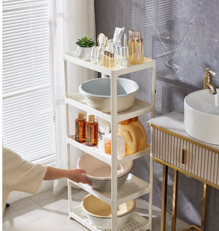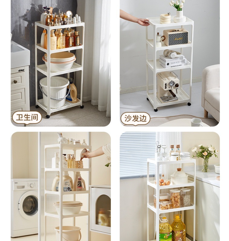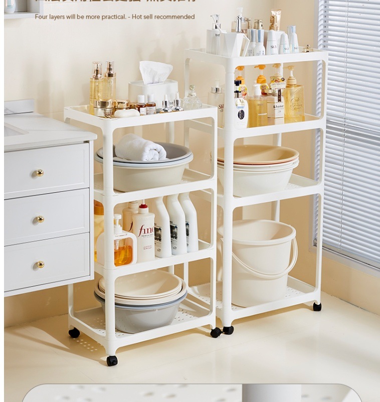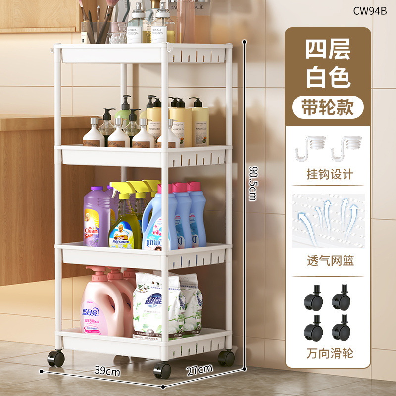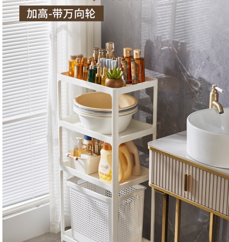 바닥에서 천장까지 이어지는 욕실 욕실 다층 화장품 보관 랙 가정용 틈새 보관 랙 스낵 카트스토어 가기