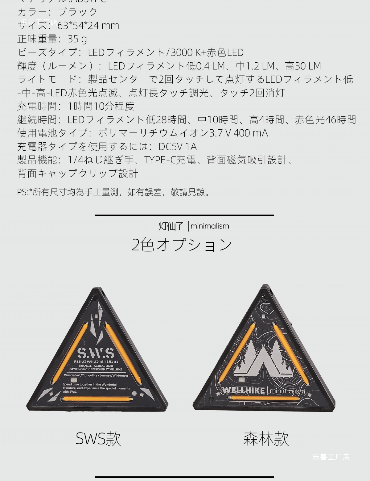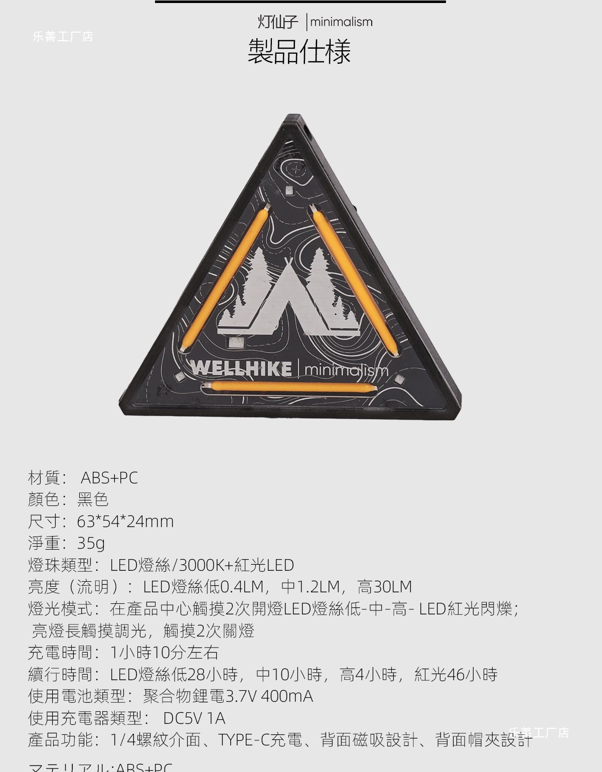 Leshan 전술 삼각형 램프 캠핑 램프 야외 배낭 경고 신호 작은 교수형 램프 캠핑 텐트 분위기 장식 사진스토어 가기