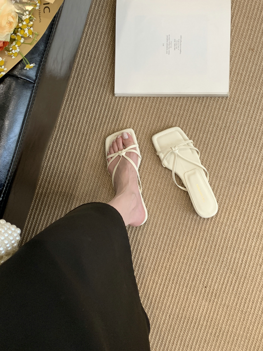 여성용 프렌치 스타일 아름다운 오픈 토 슬리퍼, 캐주얼 소프트 솔 스퀘어 토 스몰 웨지 샌들