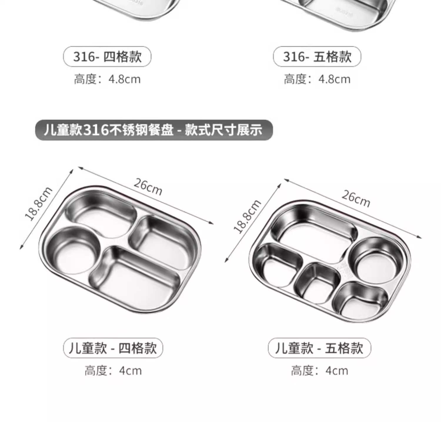 • 316L 항균 디너 접시 [4칸 - 깊이]