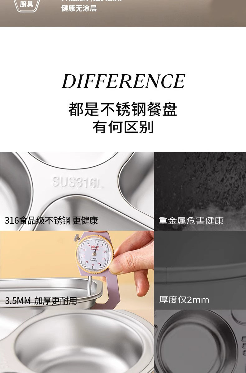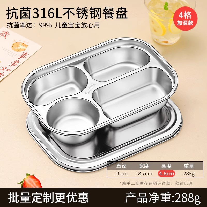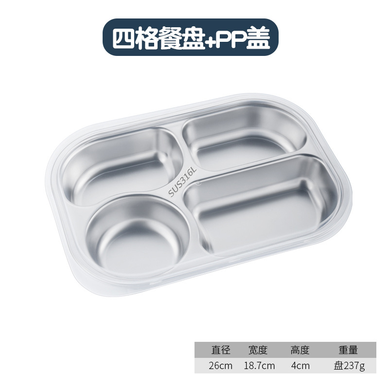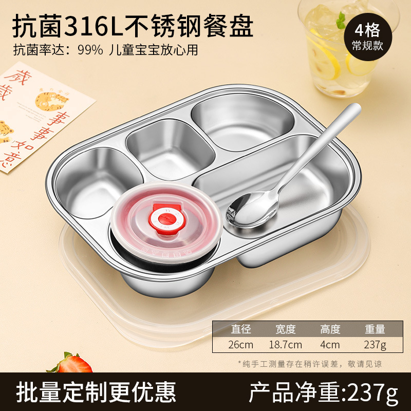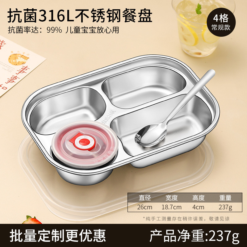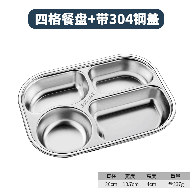 316 식품 등급 스테인레스 스틸 디너 플레이트 둥근 모서리 디너 플레이트 학교 캔틴 어린이 식기 뚜껑 그릇과 젓가락 스푼스토어 가기