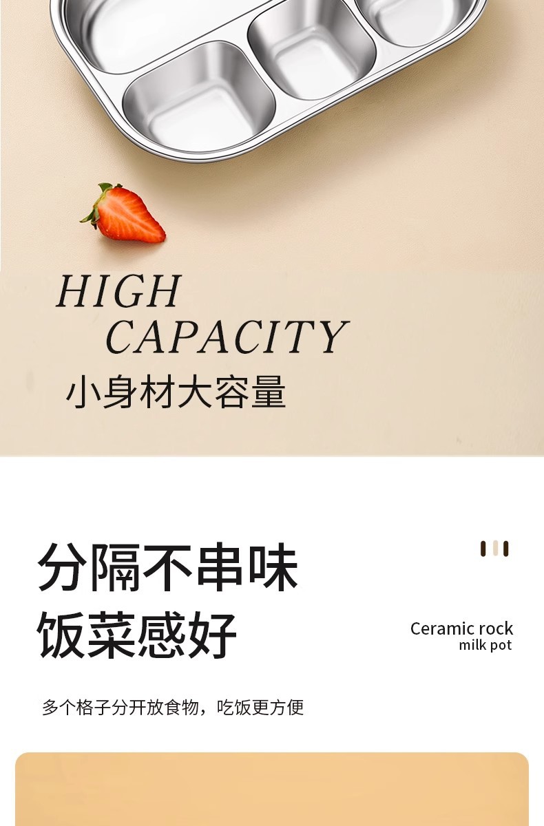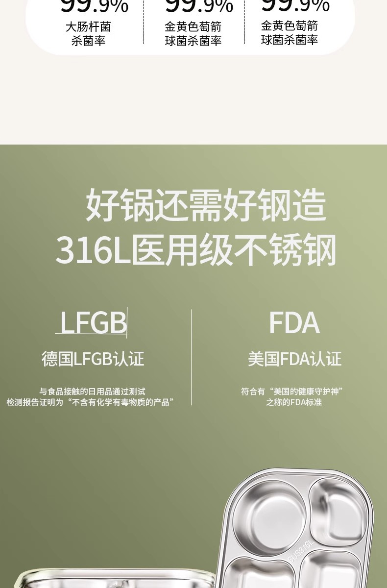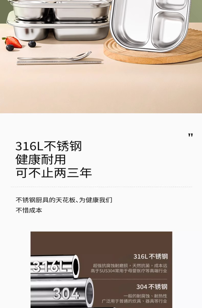 • 316L 항균 디너 접시 [4칸] + PP뚜껑 + 덮은 그릇 + 스푼