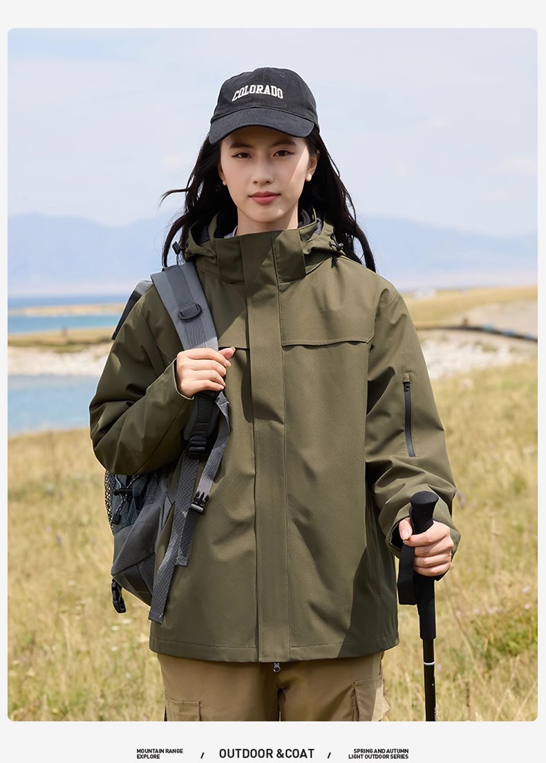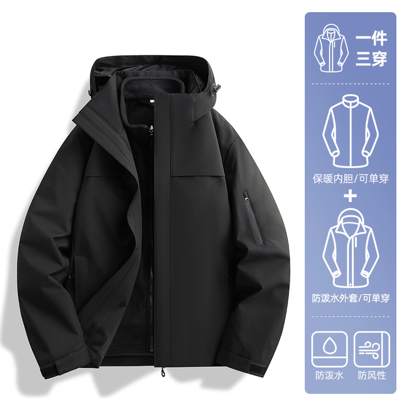 딱따구리 블랙 자켓 여성 2025 새로운 3-in-One 분리형 자켓 야외 캠핑 방수 자켓