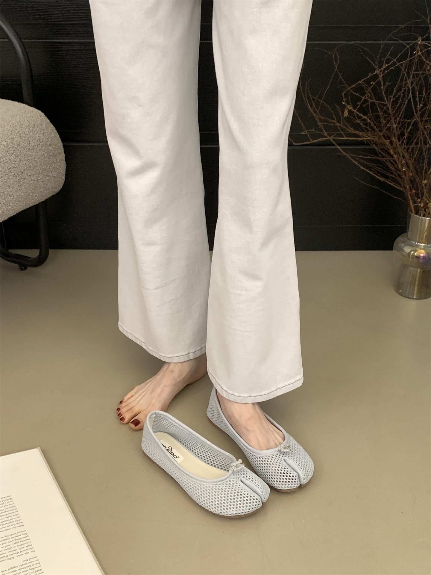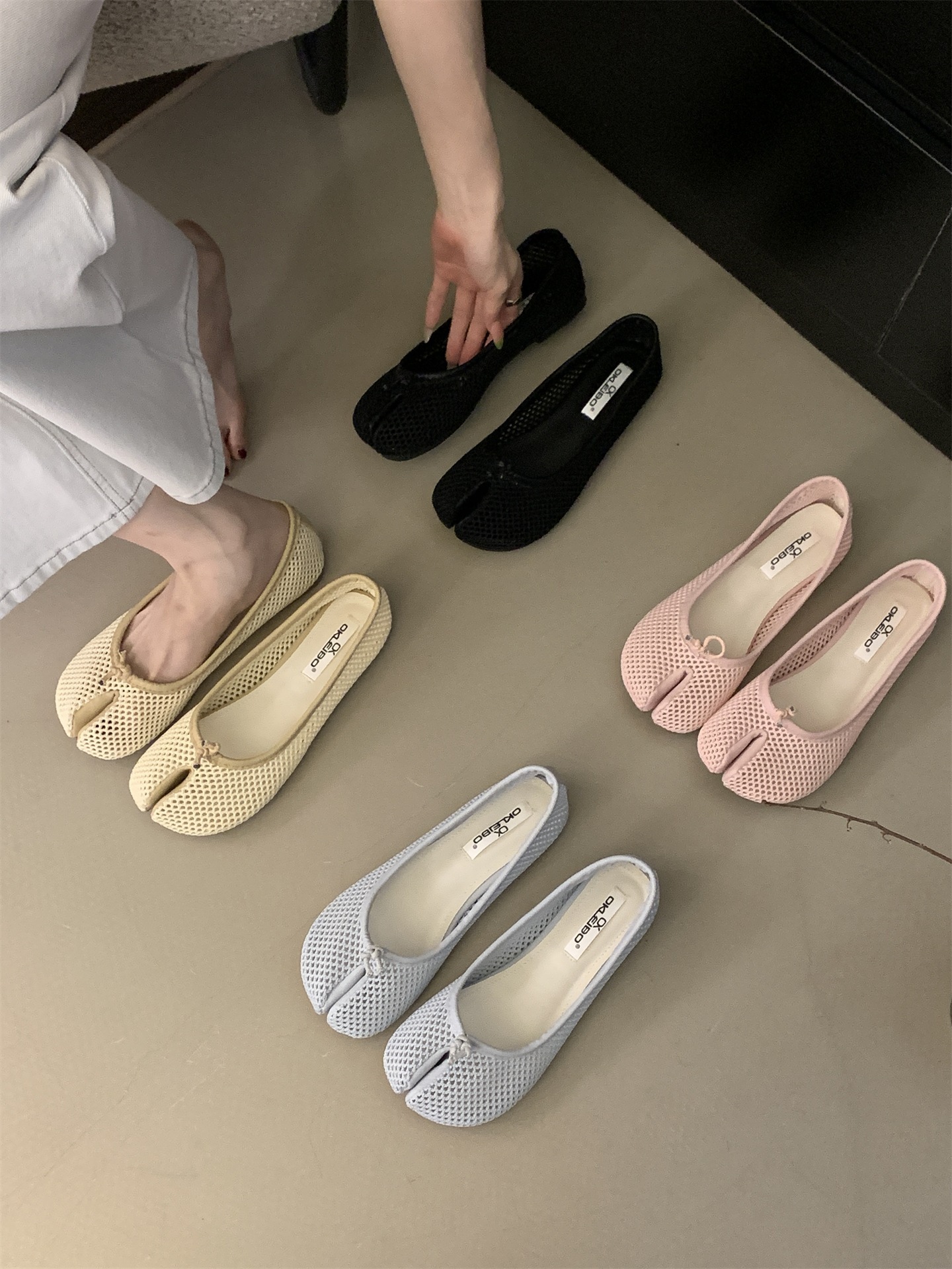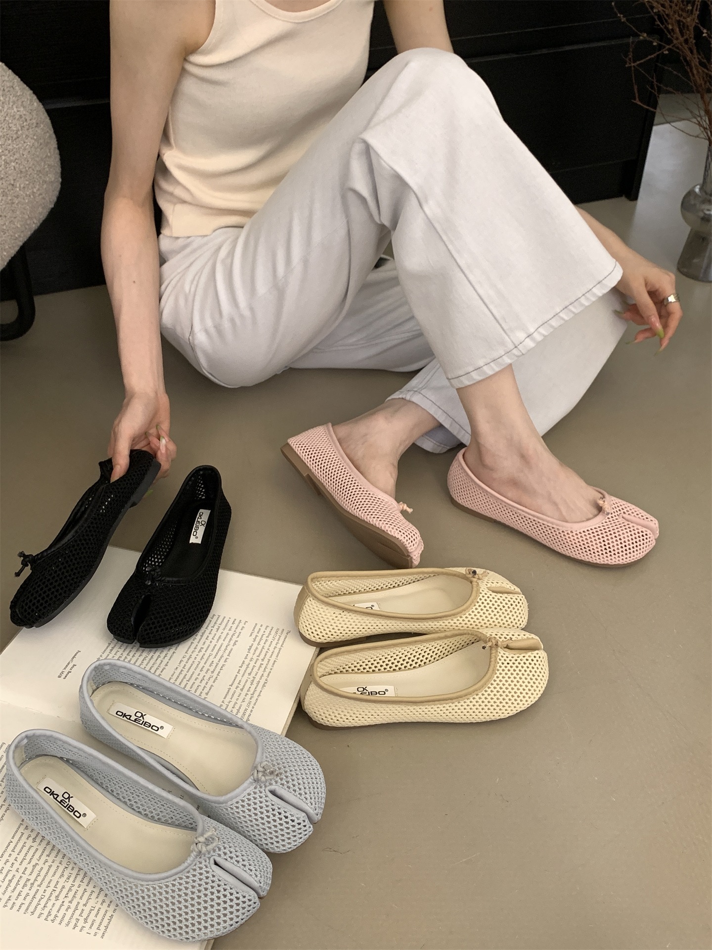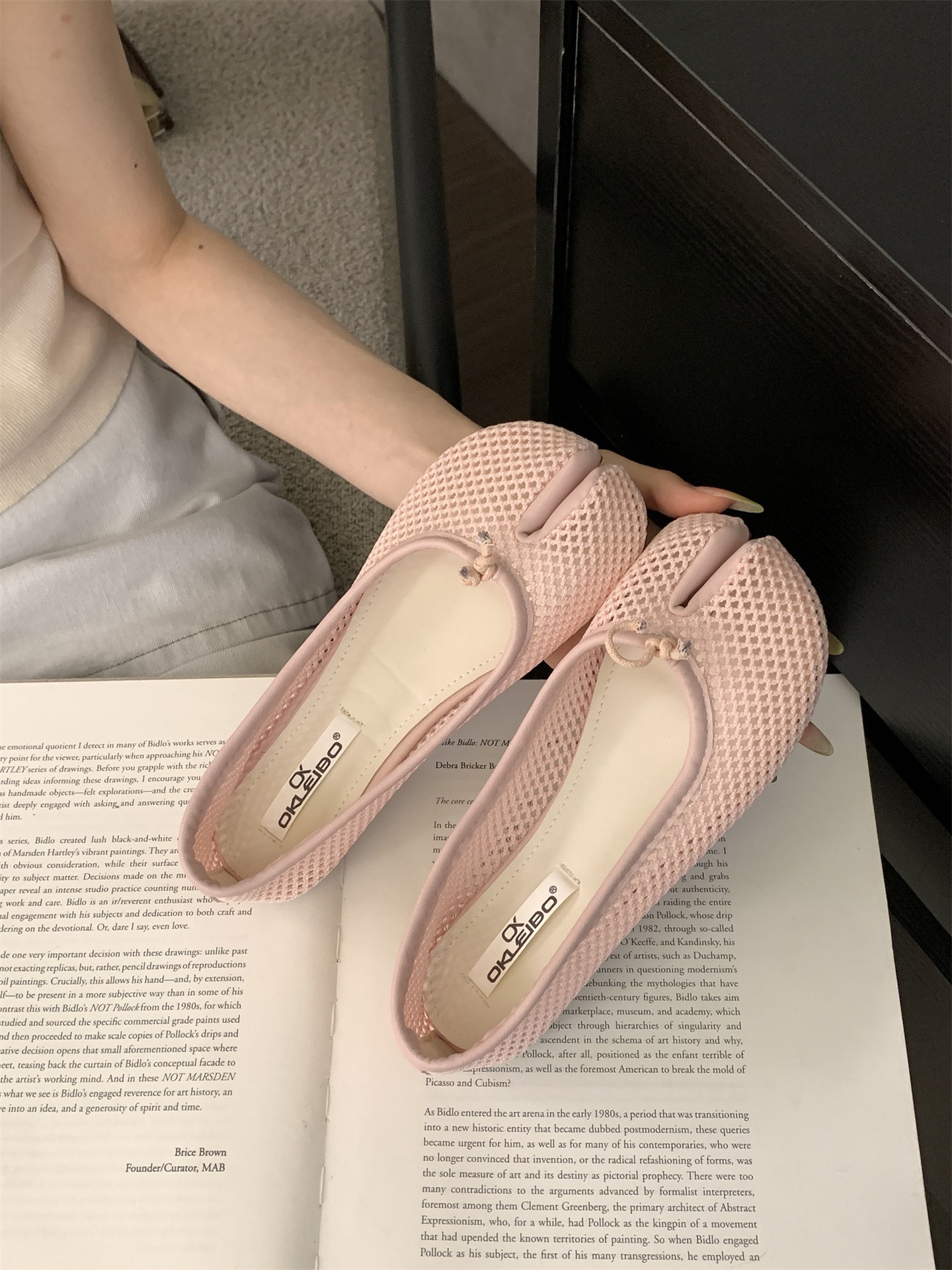 여성용 플랫 프렌치 젠틀 이브닝 슈즈, 돼지발톱 슈즈, 여름 리본 메쉬 레이스 발레 스플릿 토 슈즈스토어 가기