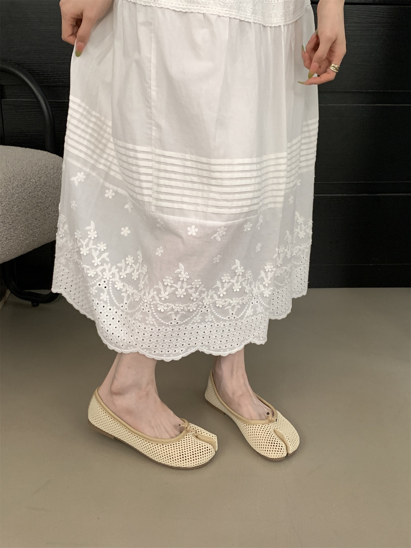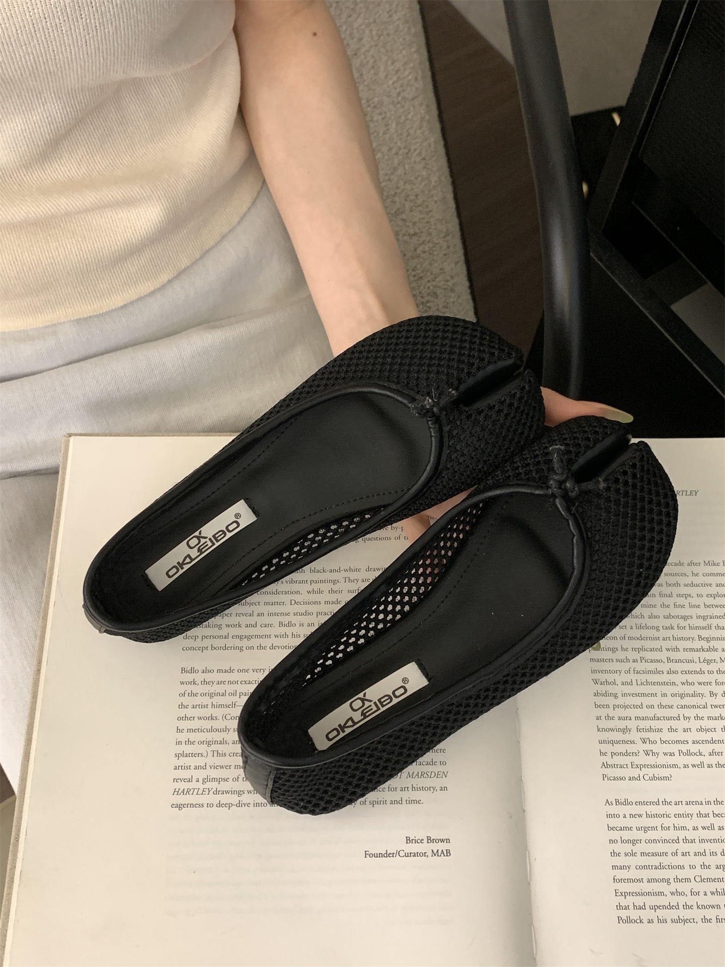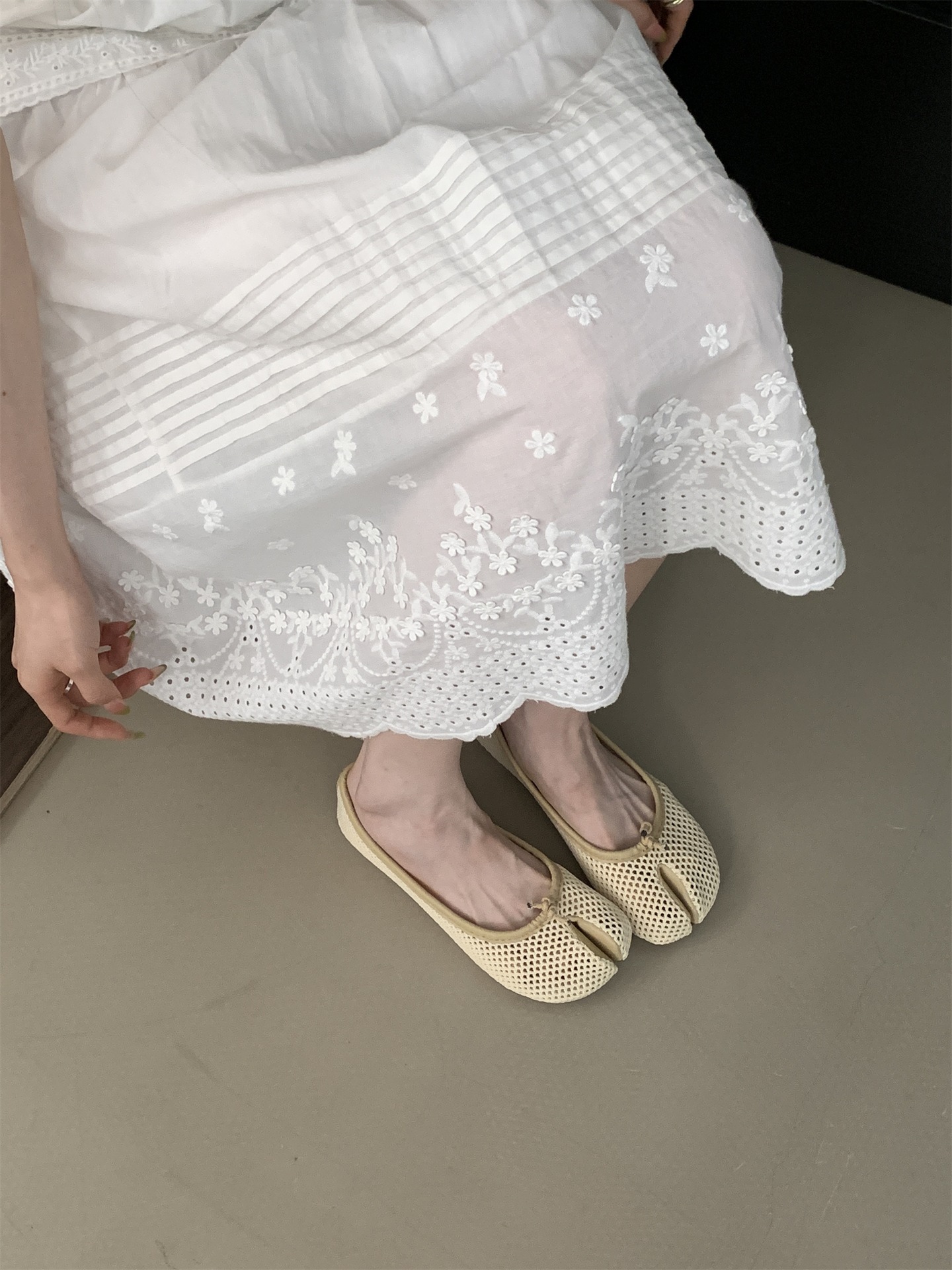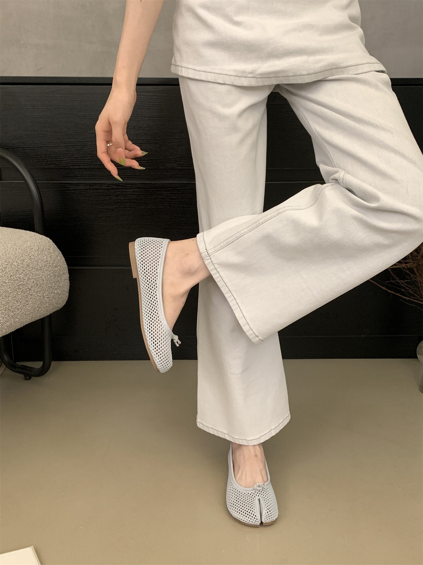 여성용 플랫 프렌치 젠틀 이브닝 슈즈, 돼지발톱 슈즈, 여름 리본 메쉬 레이스 발레 스플릿 토 슈즈스토어 가기