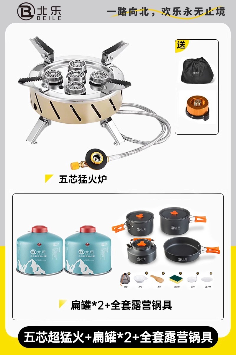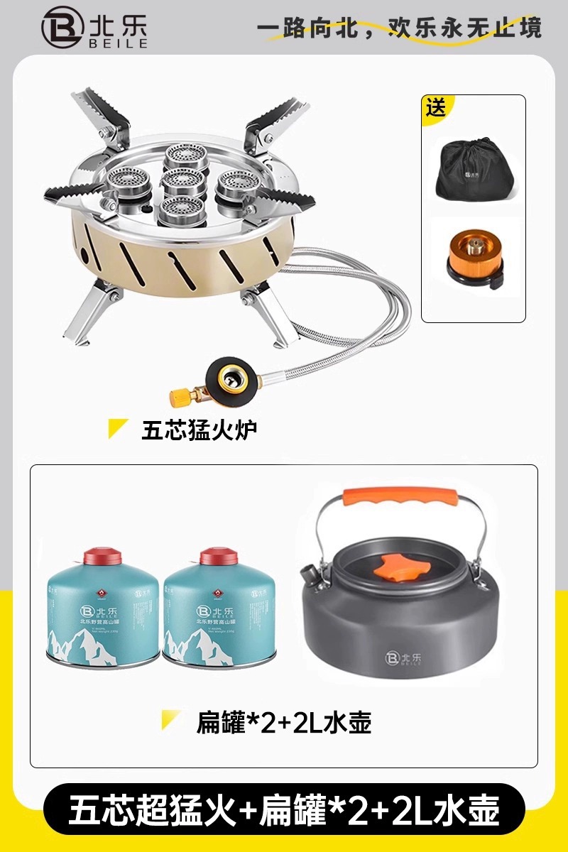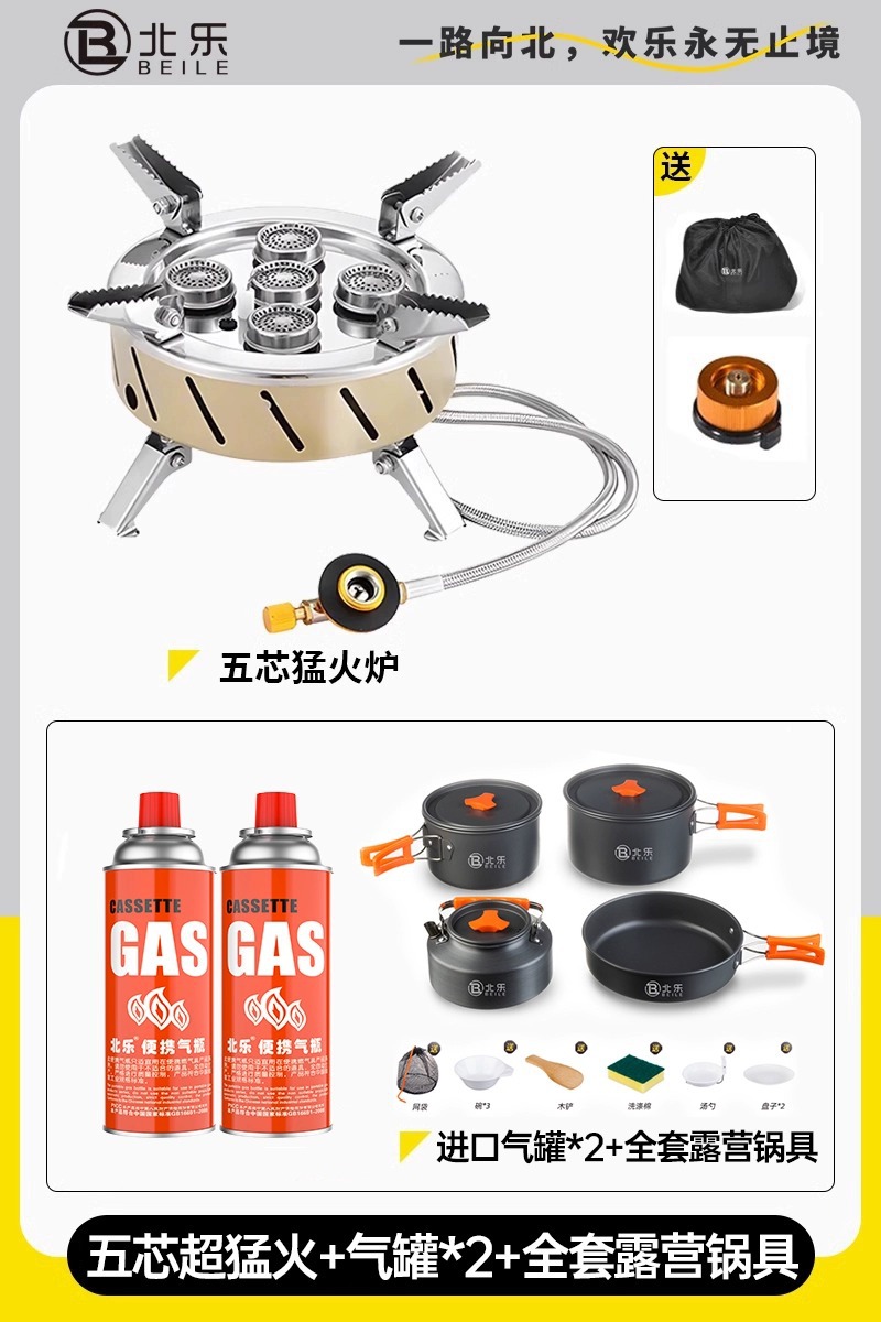 • 5심 초강력 화재 + 변환 헤드 + 230g 플랫 캔*2 + 캠핑 냄비 및 프라이팬 풀 세트