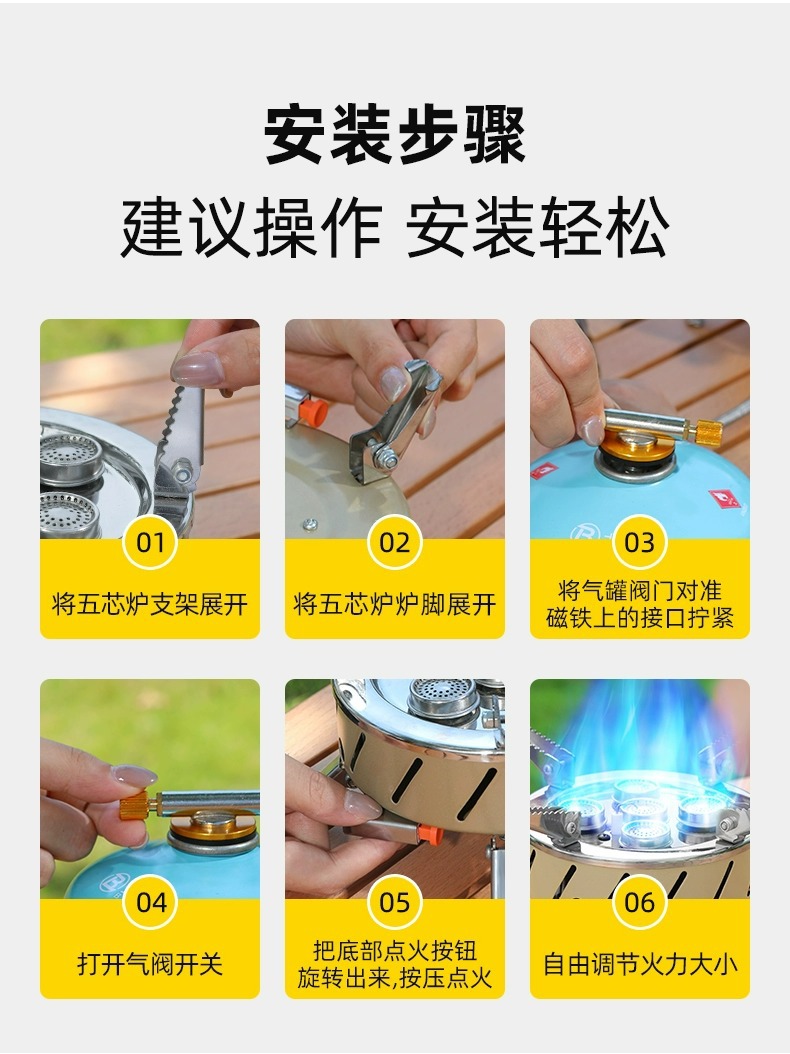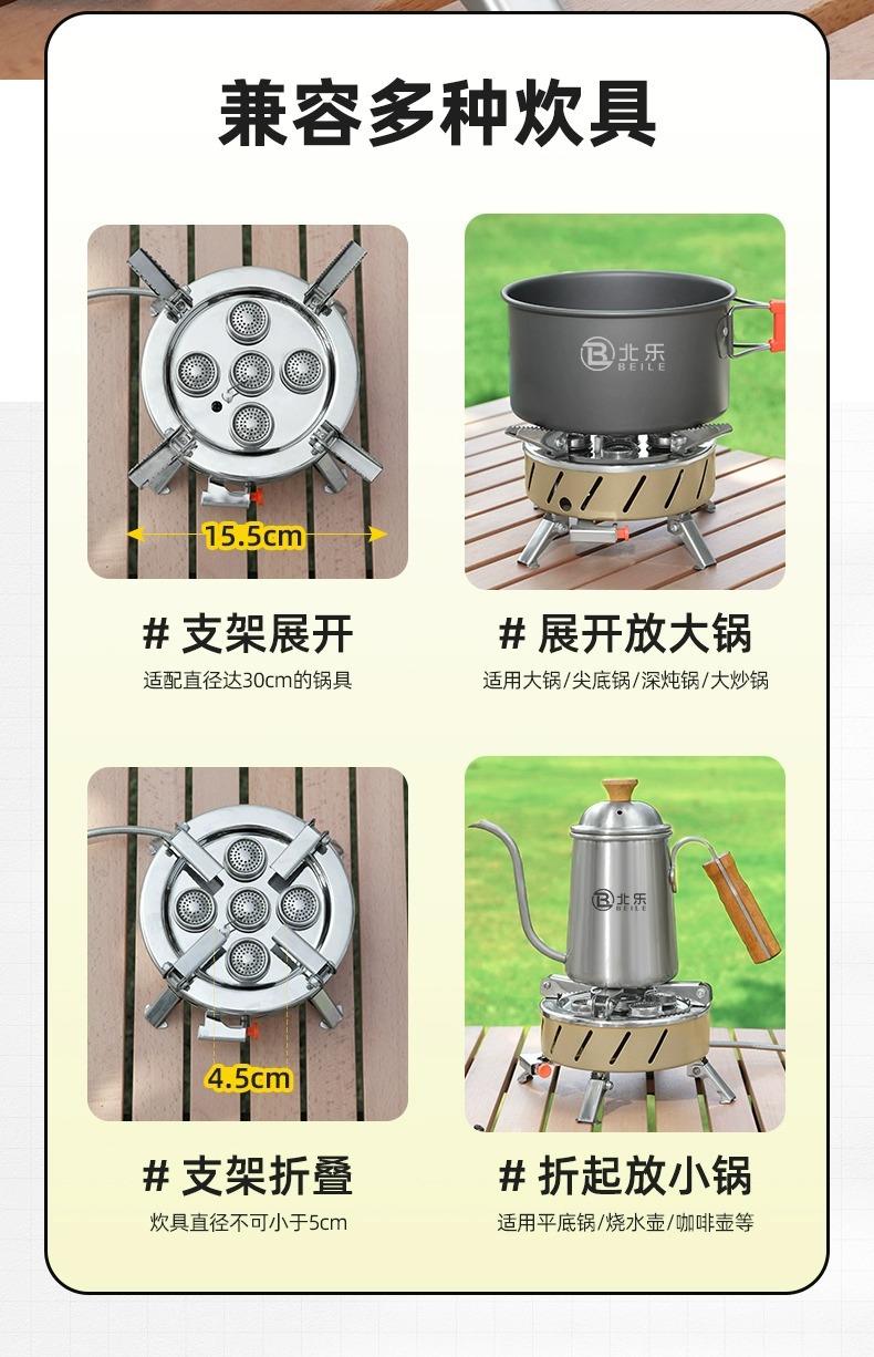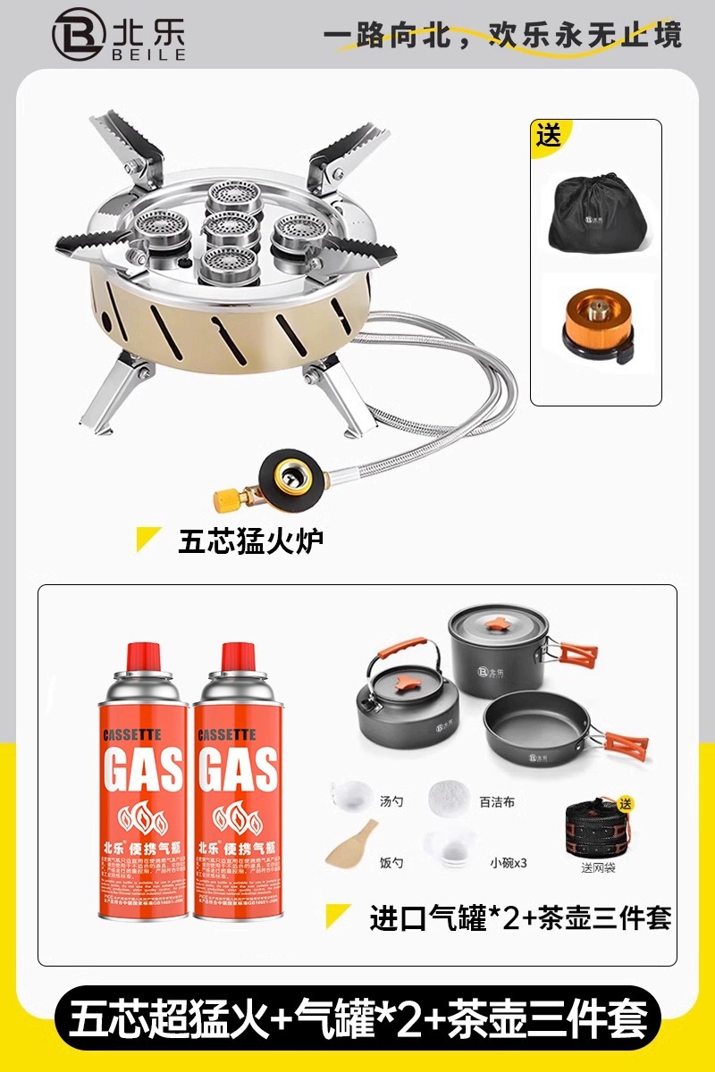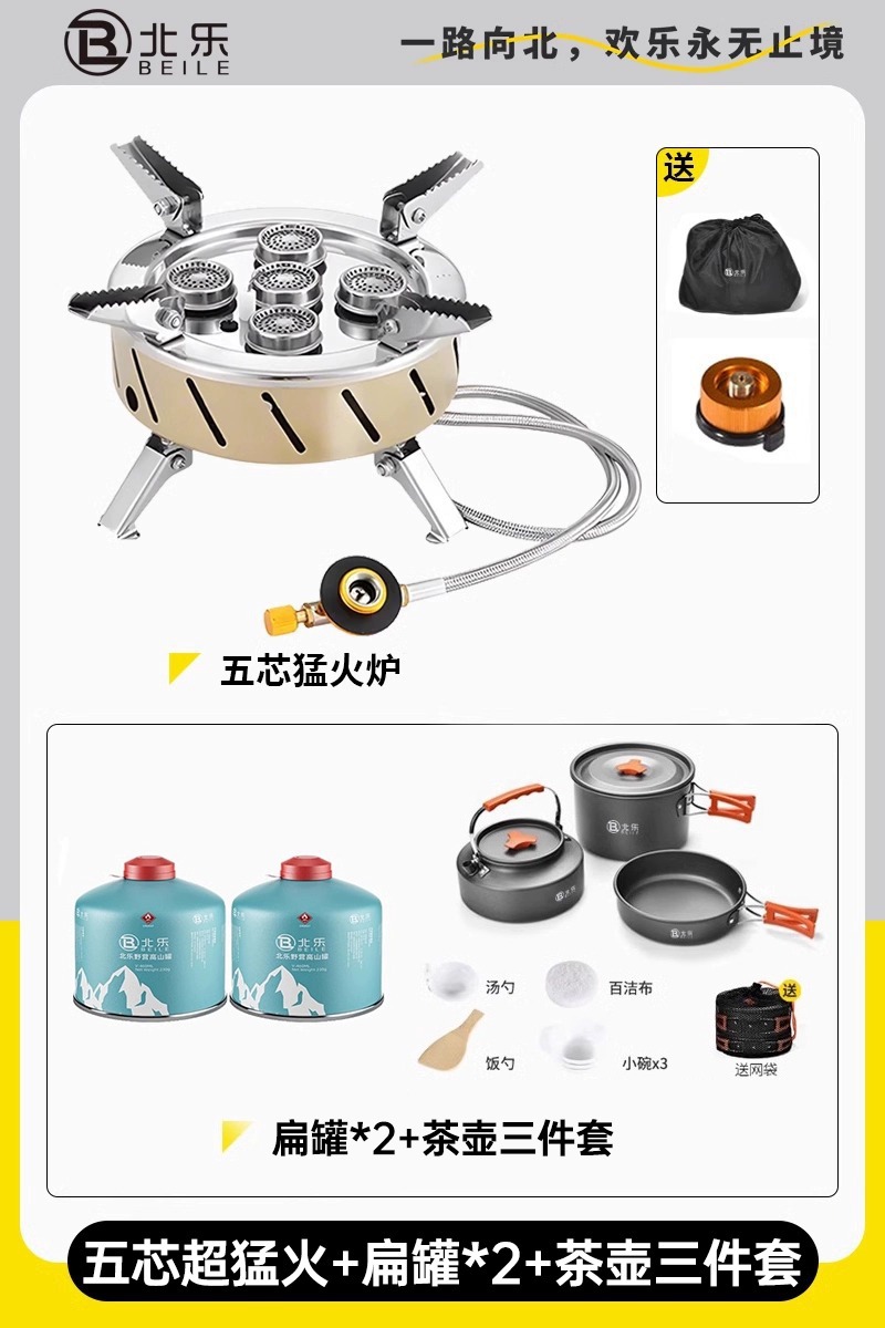 • 5심 초강력 화재 + 변환 헤드 + 230g 플랫 캔*2 + 캠핑 냄비 및 프라이팬 풀 세트