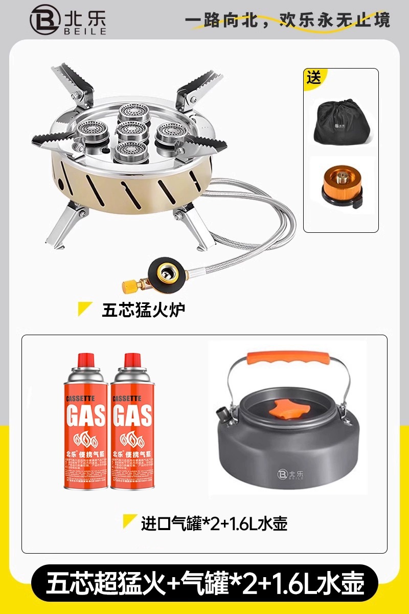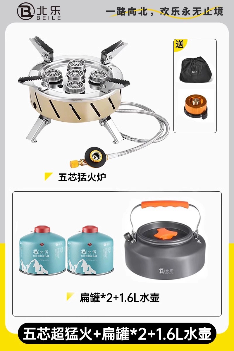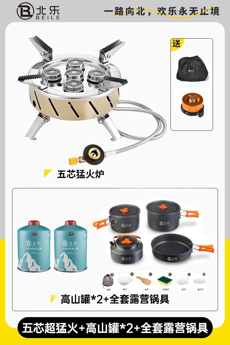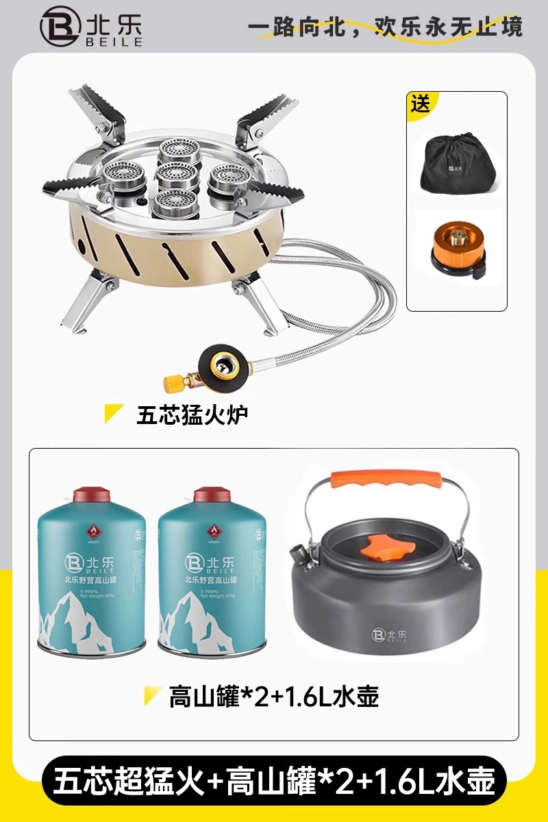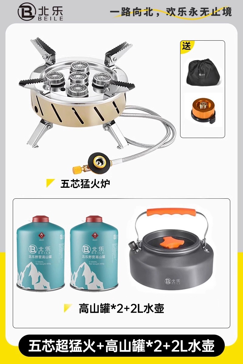 • 5심 초강력 화재 + 변환 헤드 + 450g 알파인 캔*2 + 캠핑 냄비 및 프라이팬 풀 세트
