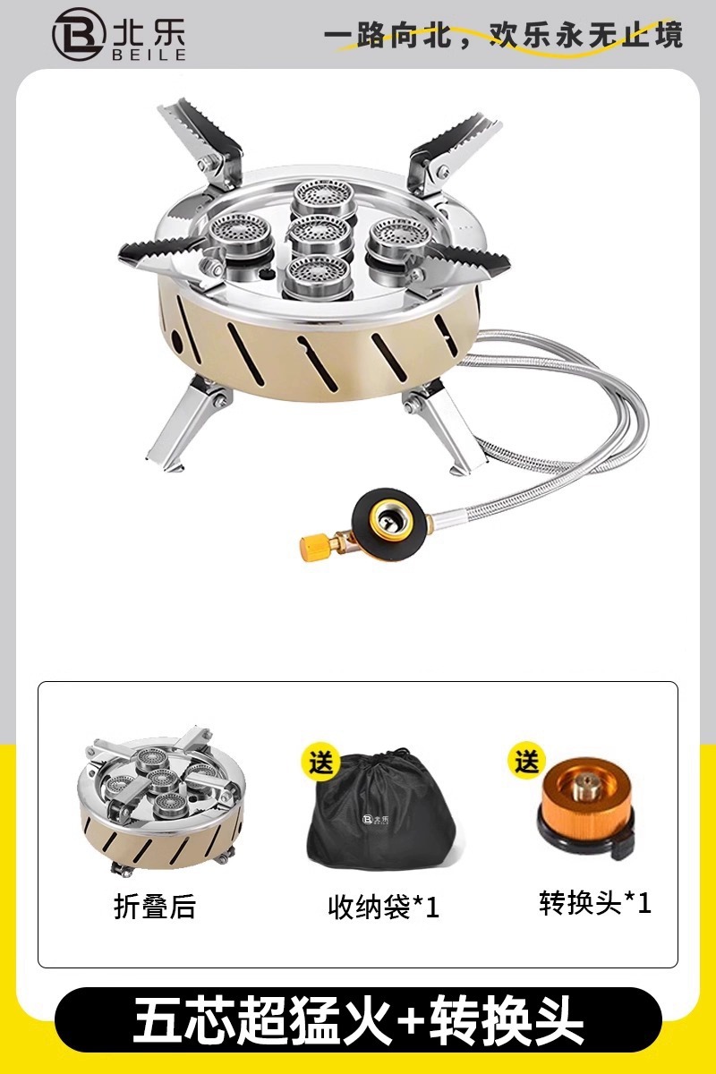 • 5코어 슈퍼 파이어 + 컨버터블 헤드 + 가스 2병 + 캠핑 냄비 및 프라이팬 풀 세트