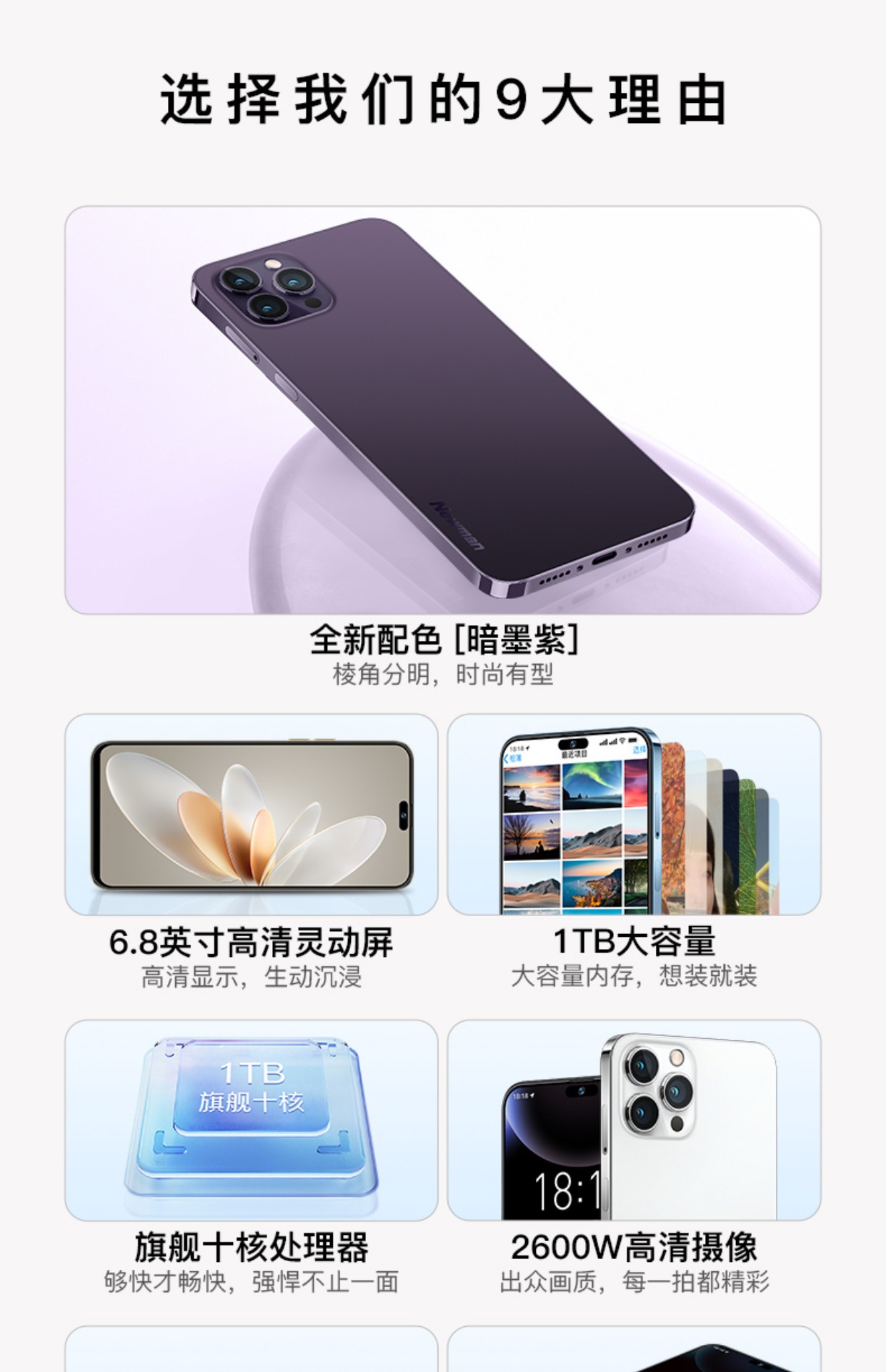 i15 스마트폰 6.8인치 512G 풀 네트워크 5G 듀얼심 게임 스마트폰 도매 최고급 5G 풀 네트워크스토어 가기