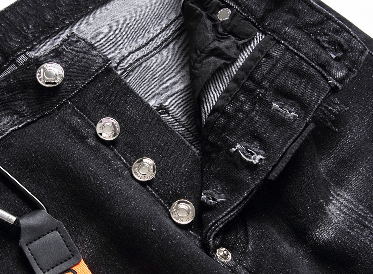 유럽과 미국의 트렌디 브랜드 Dsq2 패션 블랙 그레이 스트레치 페인트 도트 장식 지퍼 끈 찢어진 패치 청바지 남성용스토어 가기