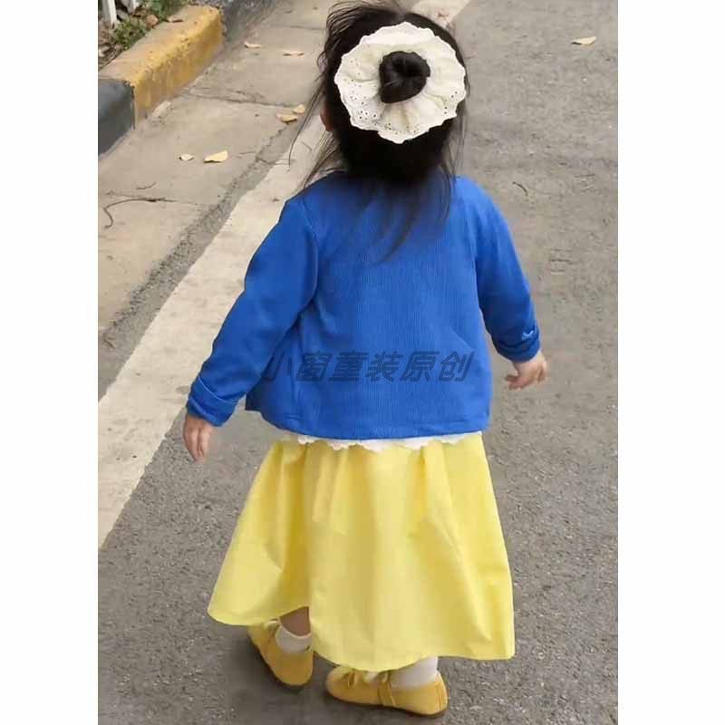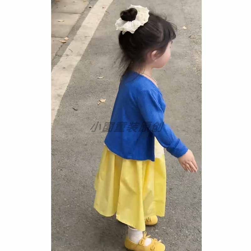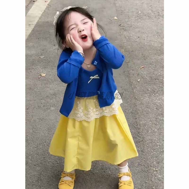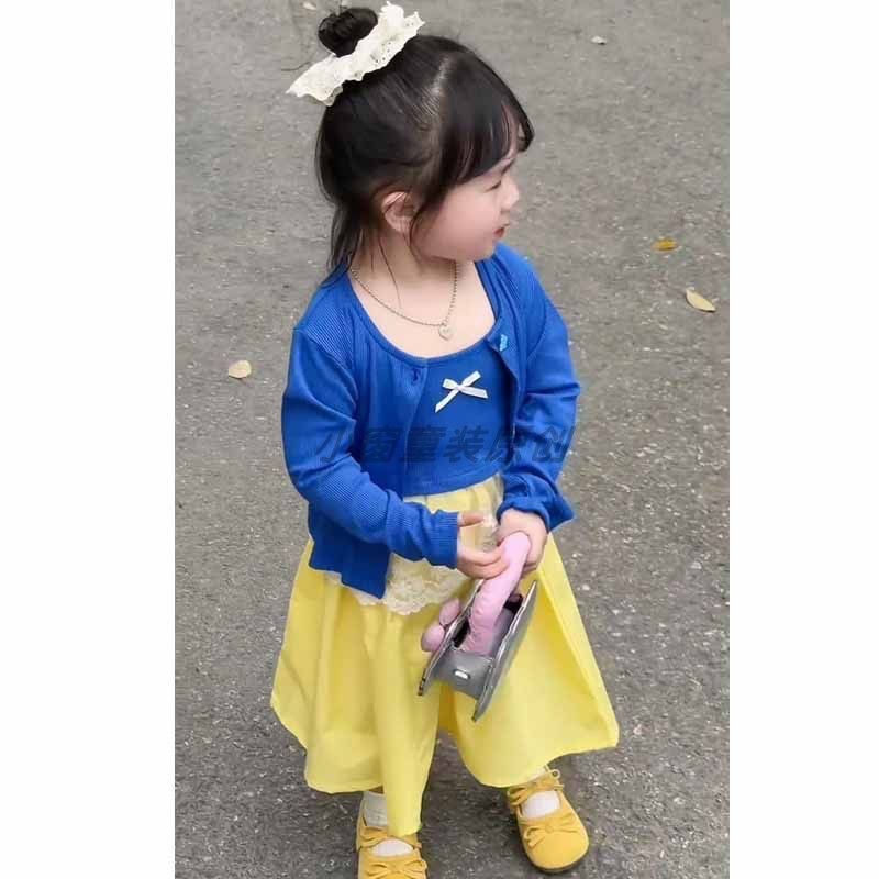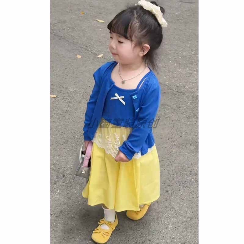 한국 스타일 아동복 여아 니트 상의 투피스 세트 여아 봄 여름 신작 코트 서스펜더 레이스 스커트 3피스 세트스토어 가기