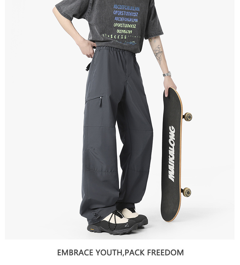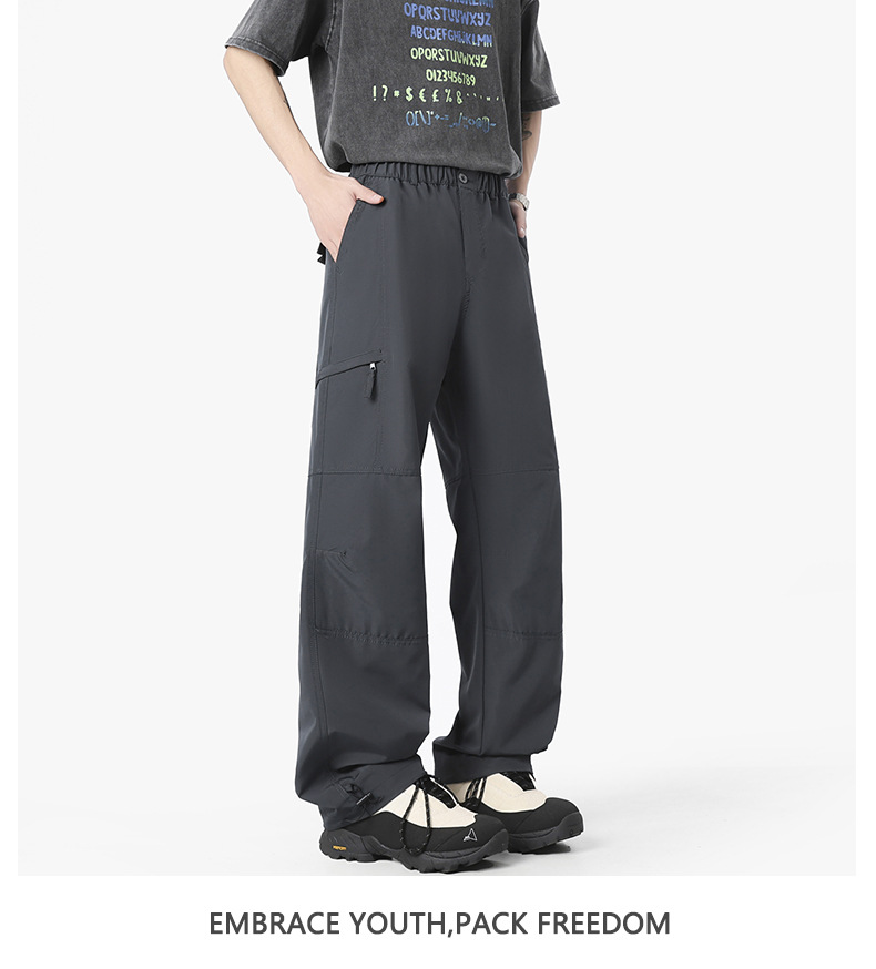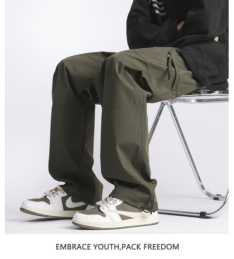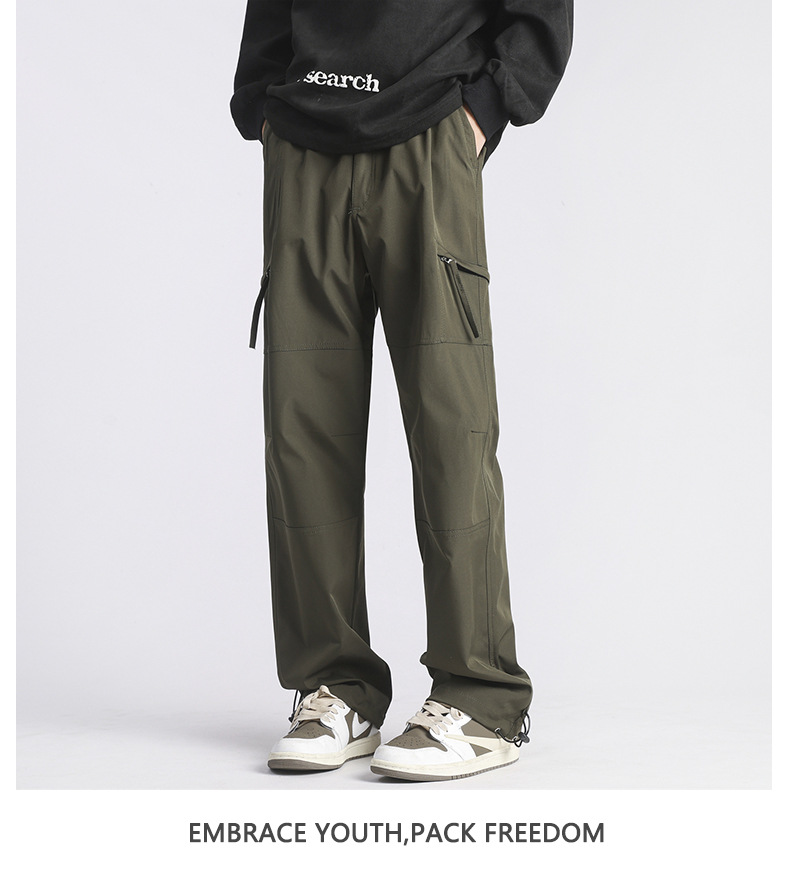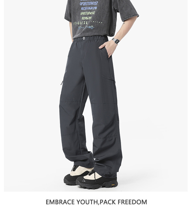 Lewe 남성복丨남성 여름 바지 트렌디한 와이드 레그 통기성 속건성 충전 바지 멀티 포켓 캐주얼 바지스토어 가기