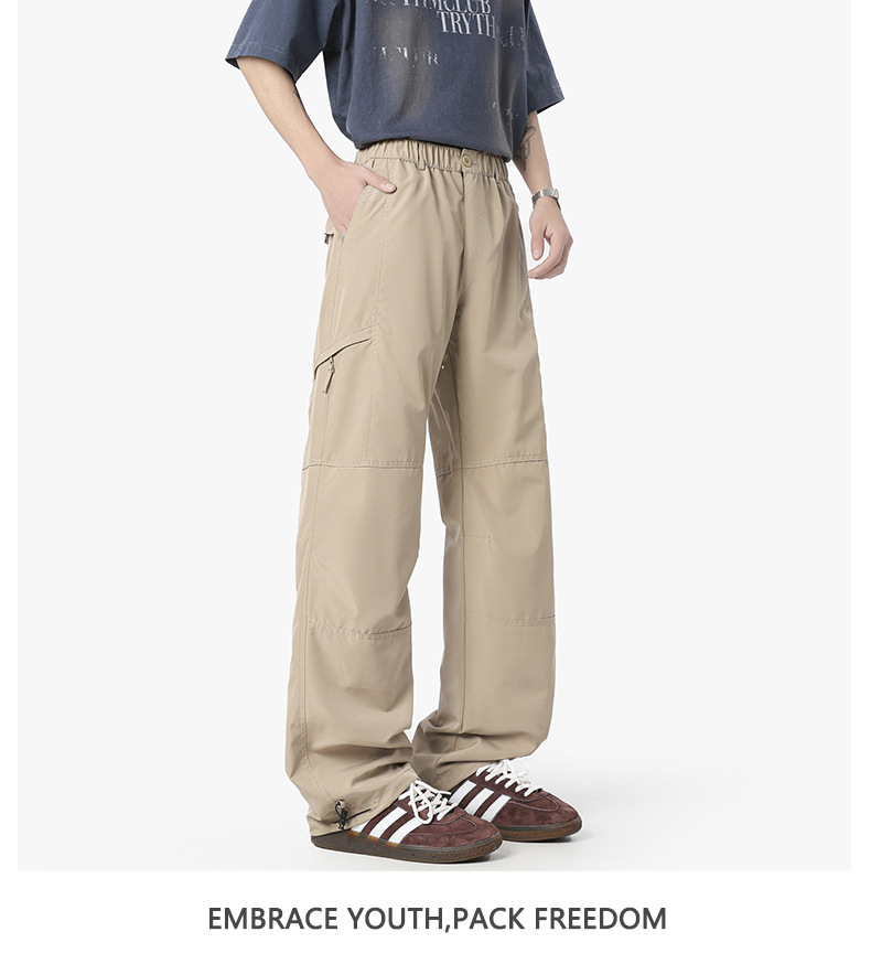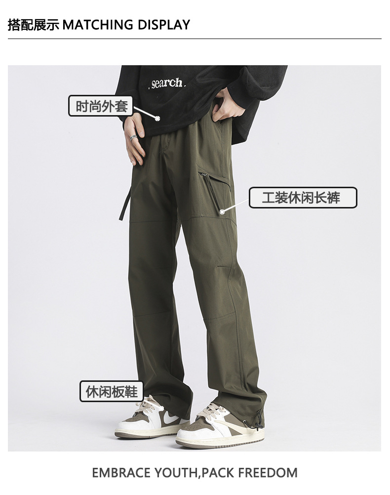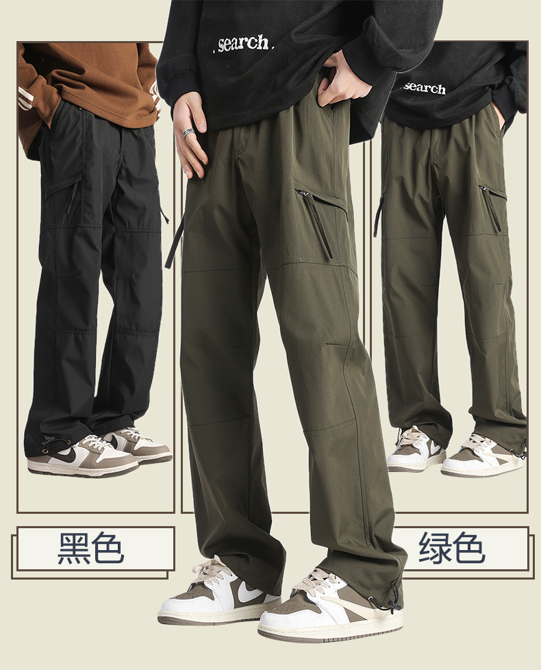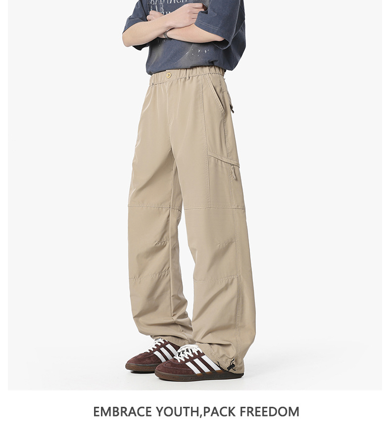 Lewe 남성복丨남성 여름 바지 트렌디한 와이드 레그 통기성 속건성 충전 바지 멀티 포켓 캐주얼 바지스토어 가기