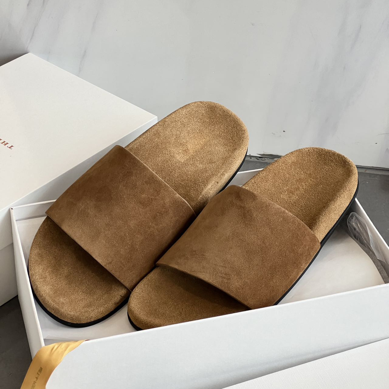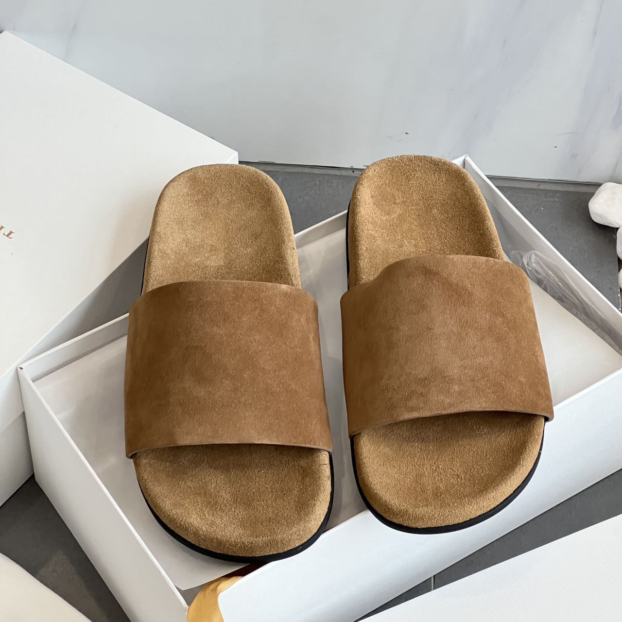 여성을위한 두꺼운 밑창 Birkenstock 슬리퍼 2025 여름 새로운 스타일 플랫 스웨이드 외부 착용 여성용 복고풍 스타일 비치 슬리퍼스토어 가기