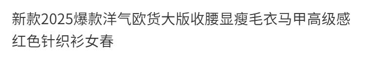 대외 무역 2025 가을 겨울 새로운 스타일 대형 버전 허리 슬리밍 스웨터 조끼 여성을위한 고급 빨간색 스웨터스토어 가기