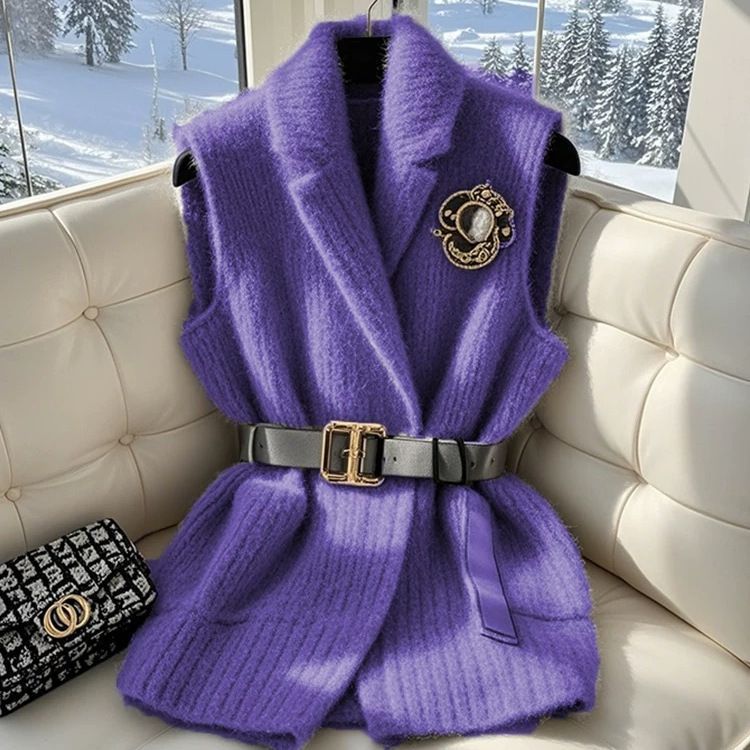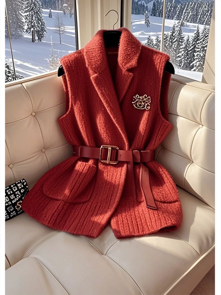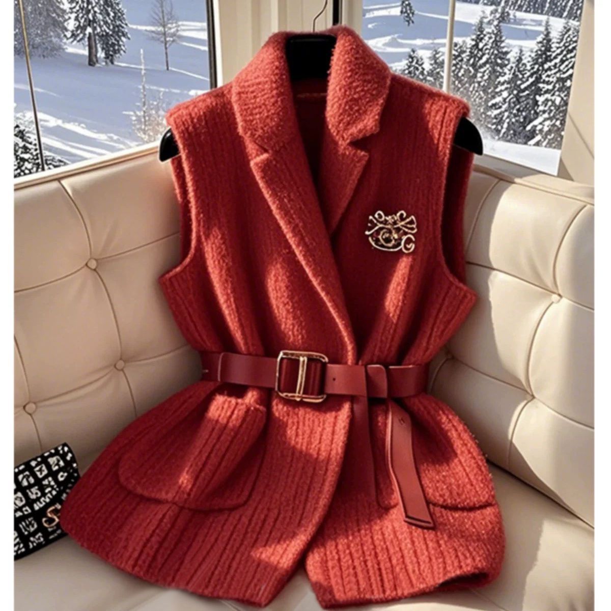 대외 무역 2025 가을 겨울 새로운 스타일 대형 버전 허리 슬리밍 스웨터 조끼 여성을위한 고급 빨간색 스웨터