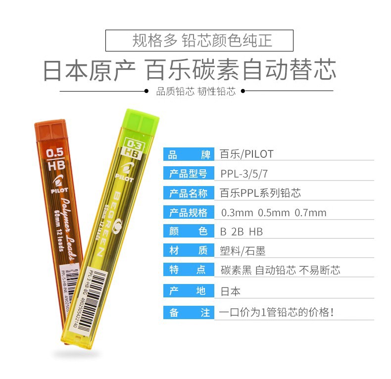 일본 PILOT Baile 자동 리드 PPL 샤프 펜슬 리필 0.3/0.5/0.7 학생용 특수 리필스토어 가기