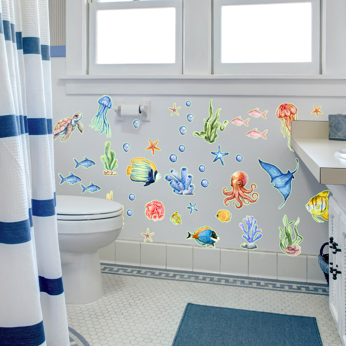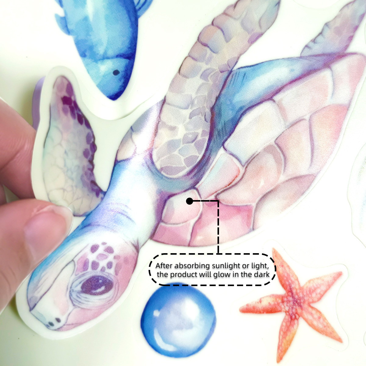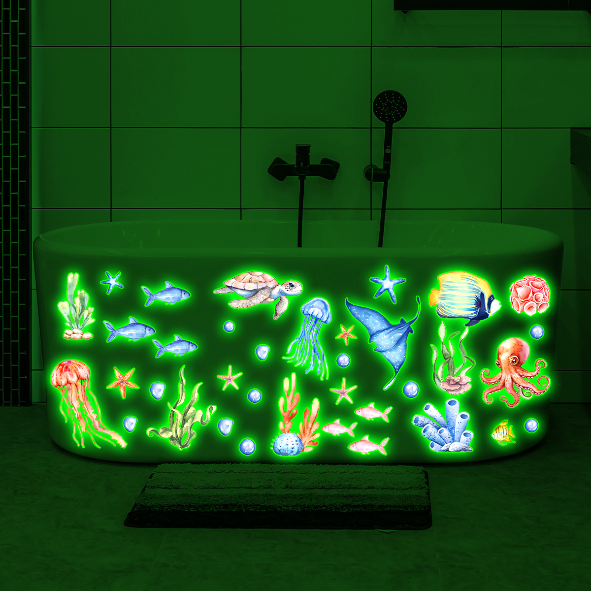 YCG9257 빛나는 수중 세계 거북이 거품 욕실 스티커 어린이 방 침실 형광 장식 크리 에이 티브 벽 스티커