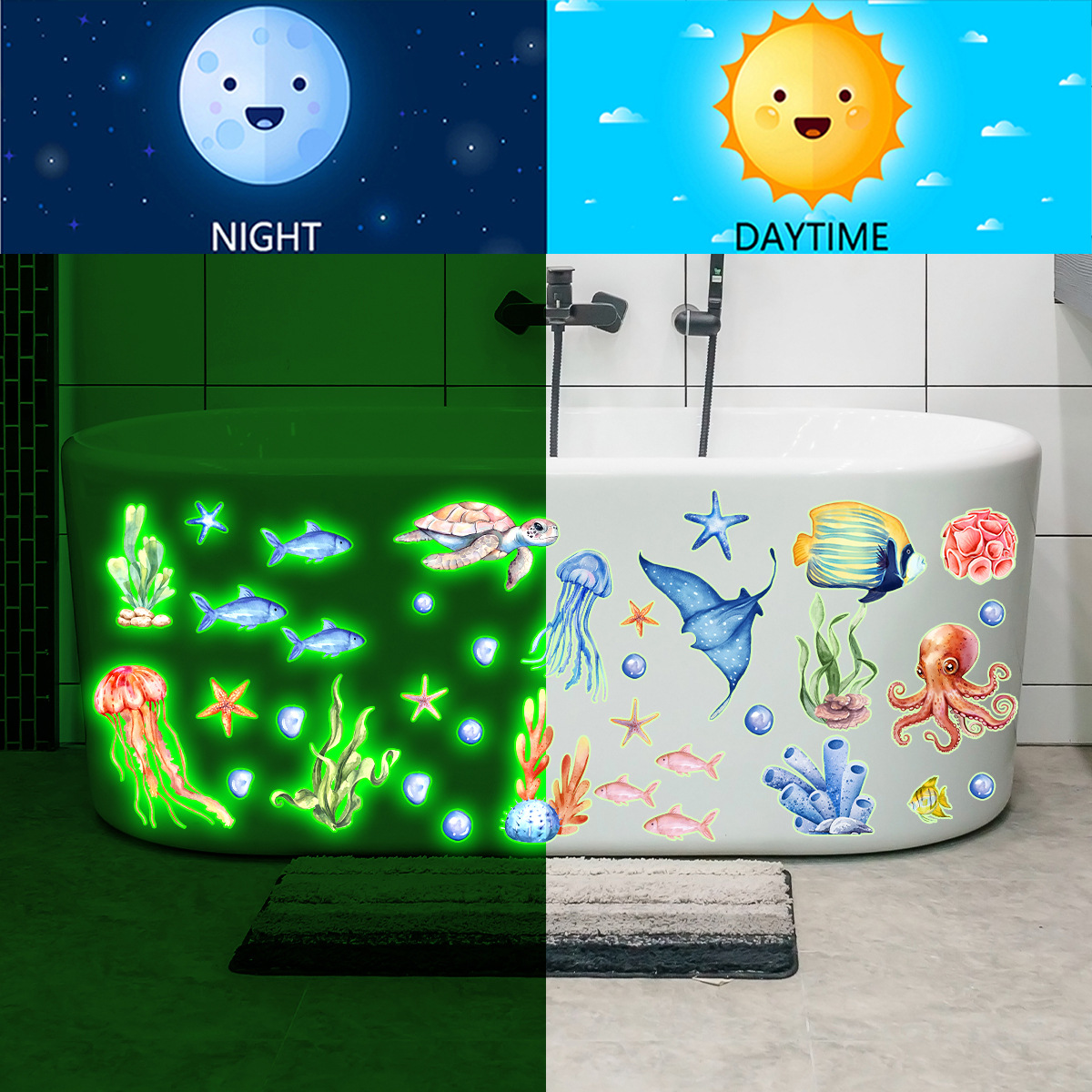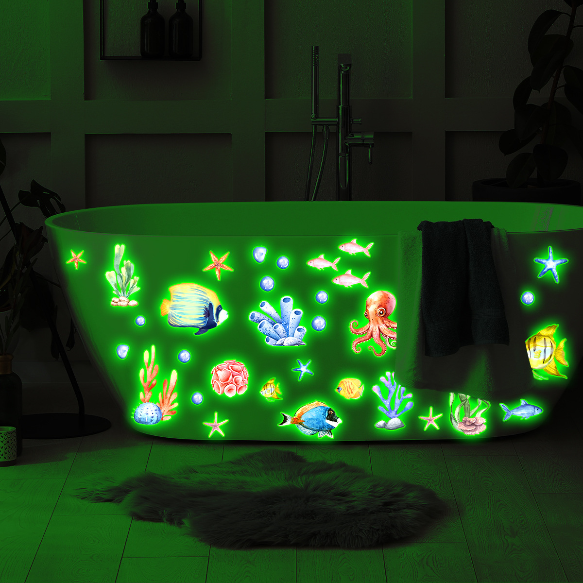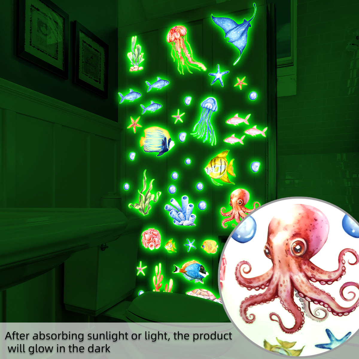 YCG9257 빛나는 수중 세계 거북이 거품 욕실 스티커 어린이 방 침실 형광 장식 크리 에이 티브 벽 스티커