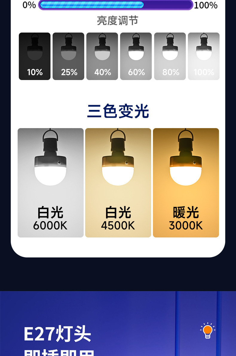 • 모델 B - 자기 3색 + E26 램프 헤드 - 배터리 2000mah