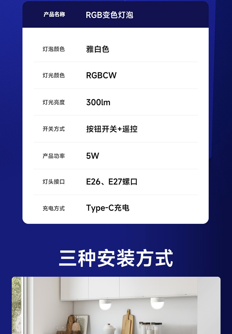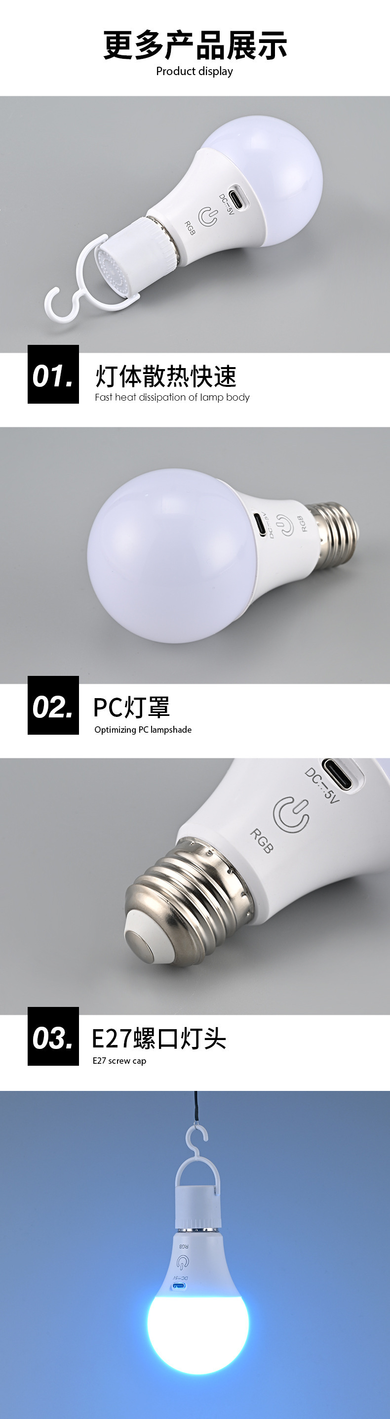 • 모델 B - 자기 3색 + RGB + E26 램프 헤드 - 배터리 2000mah