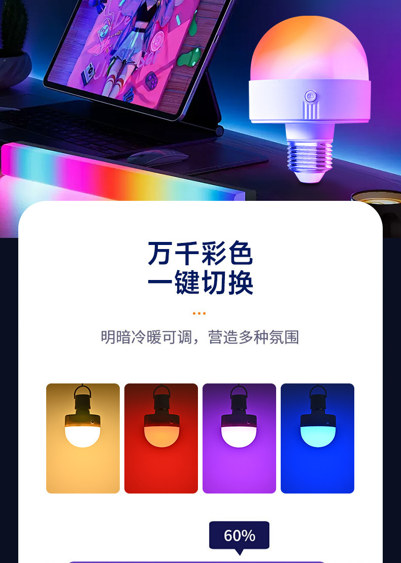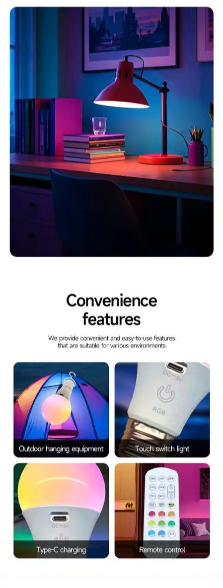 국경 간 아마존 벽 램프 테이블 램프 E27 나사 RGB 전구 원격 제어 터치 스위치 충전 비상 전구스토어 가기