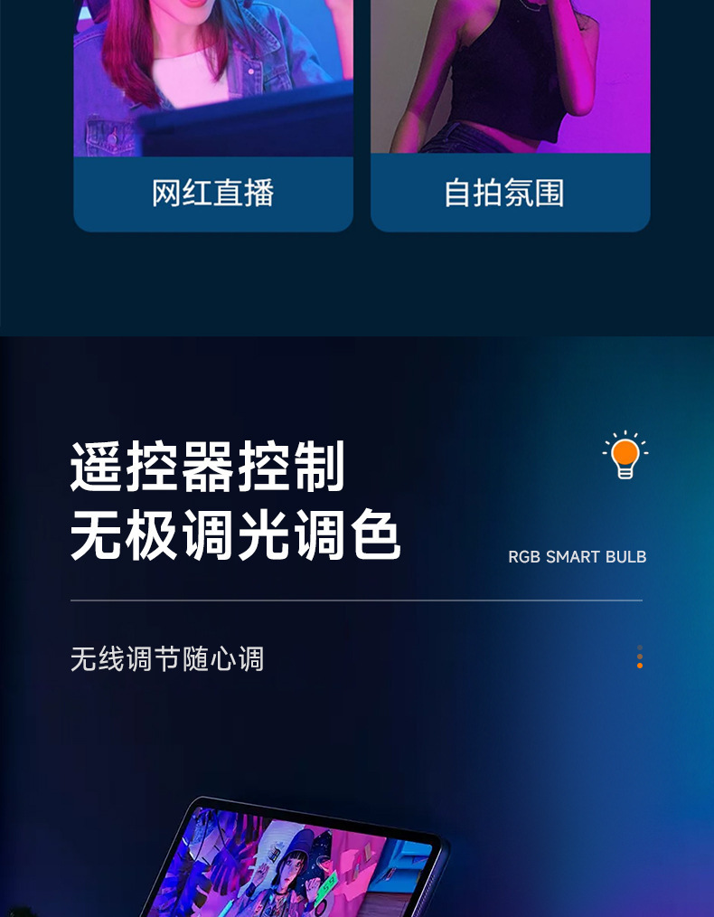 • 3색 디밍 + 소형 리모컨이 포함된 RGB - 배터리 2000mah