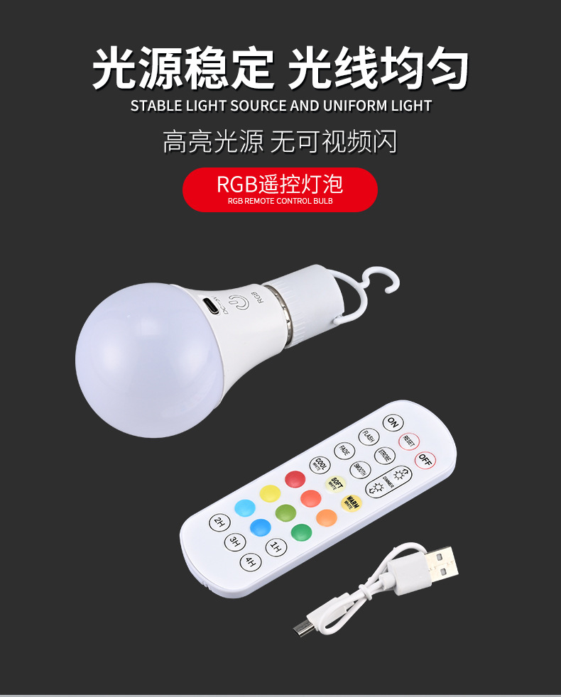 • 3색 디밍 + 소형 리모컨이 포함된 RGB - 배터리 1200mah