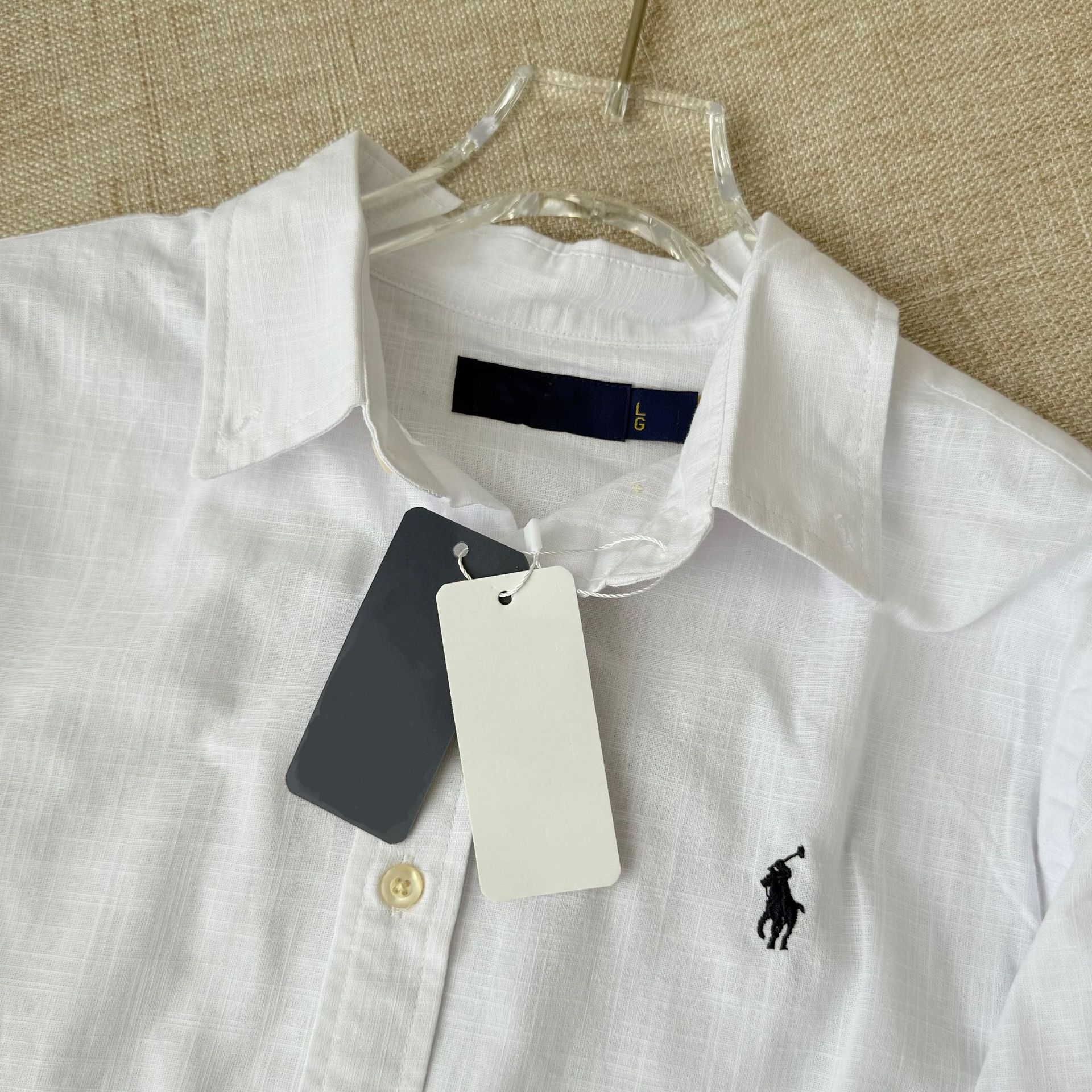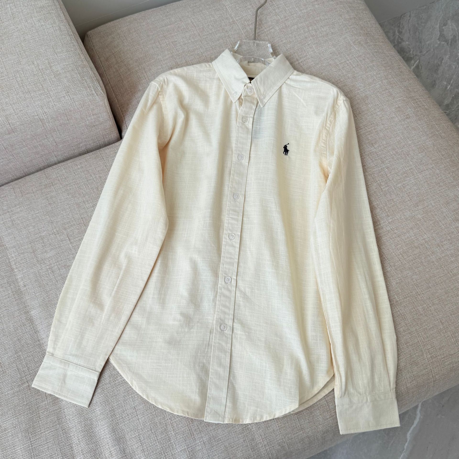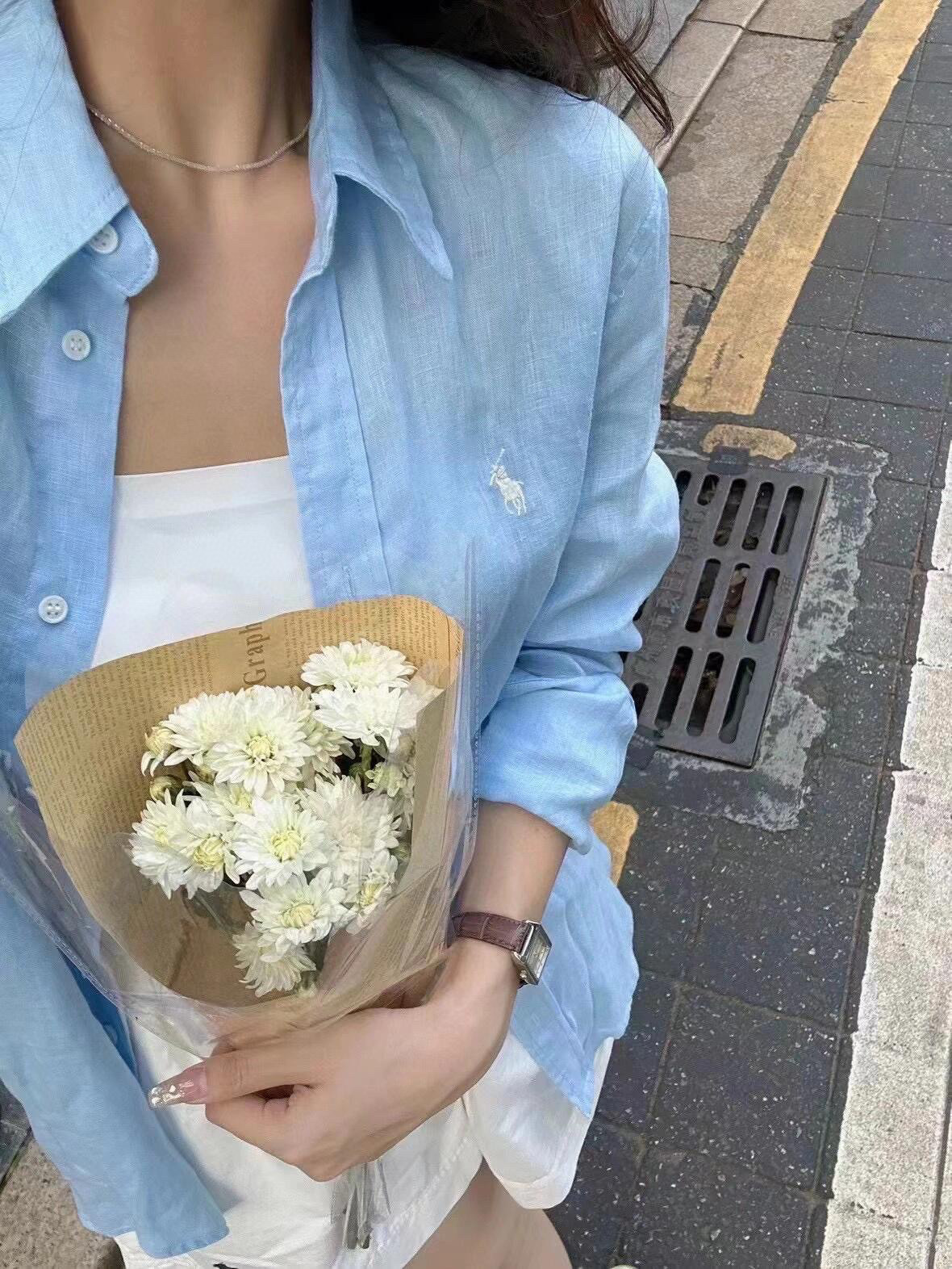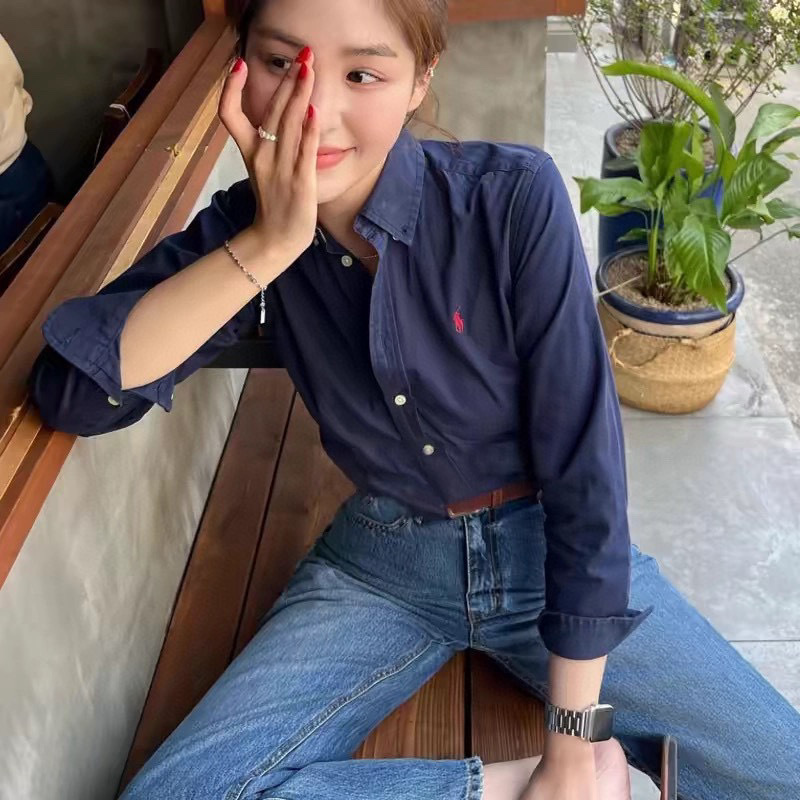 【원본 원래 라벨 스캔 가능】RL 라프 셔츠 린넨 코튼 포니 로고 자수 폴로 칼라 셔츠 여성 인기 상품스토어 가기