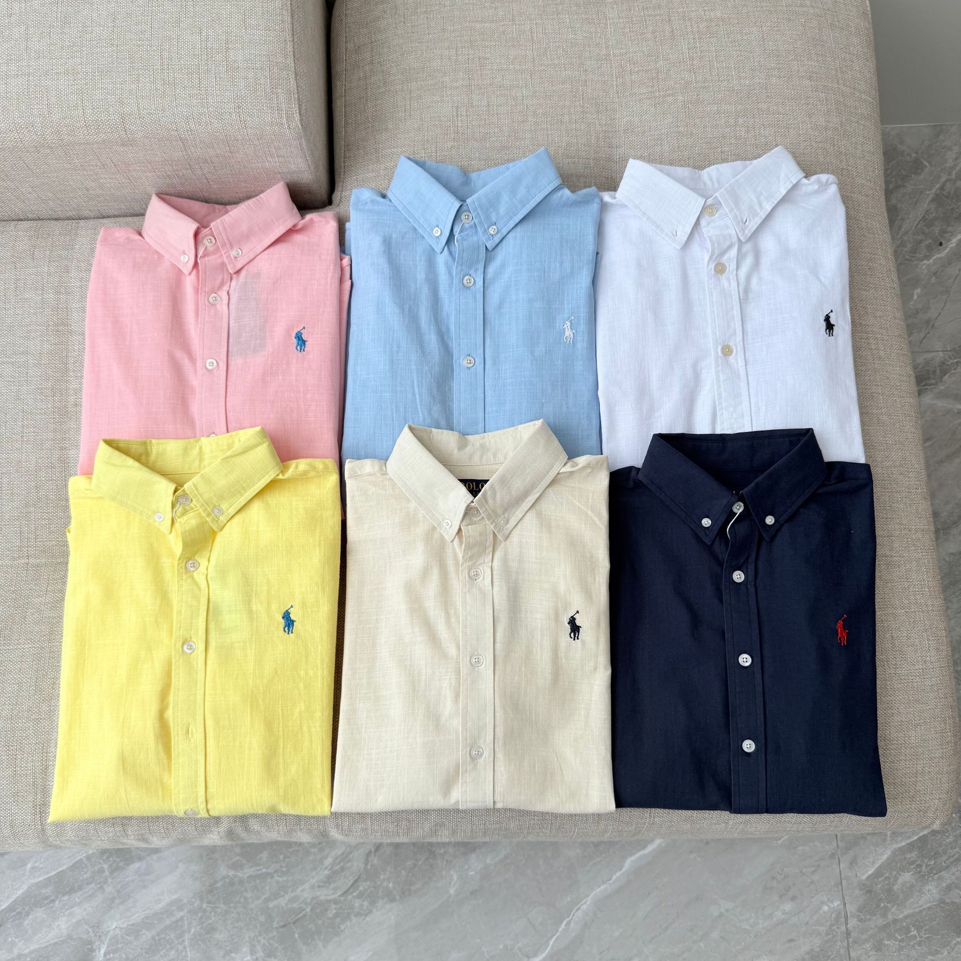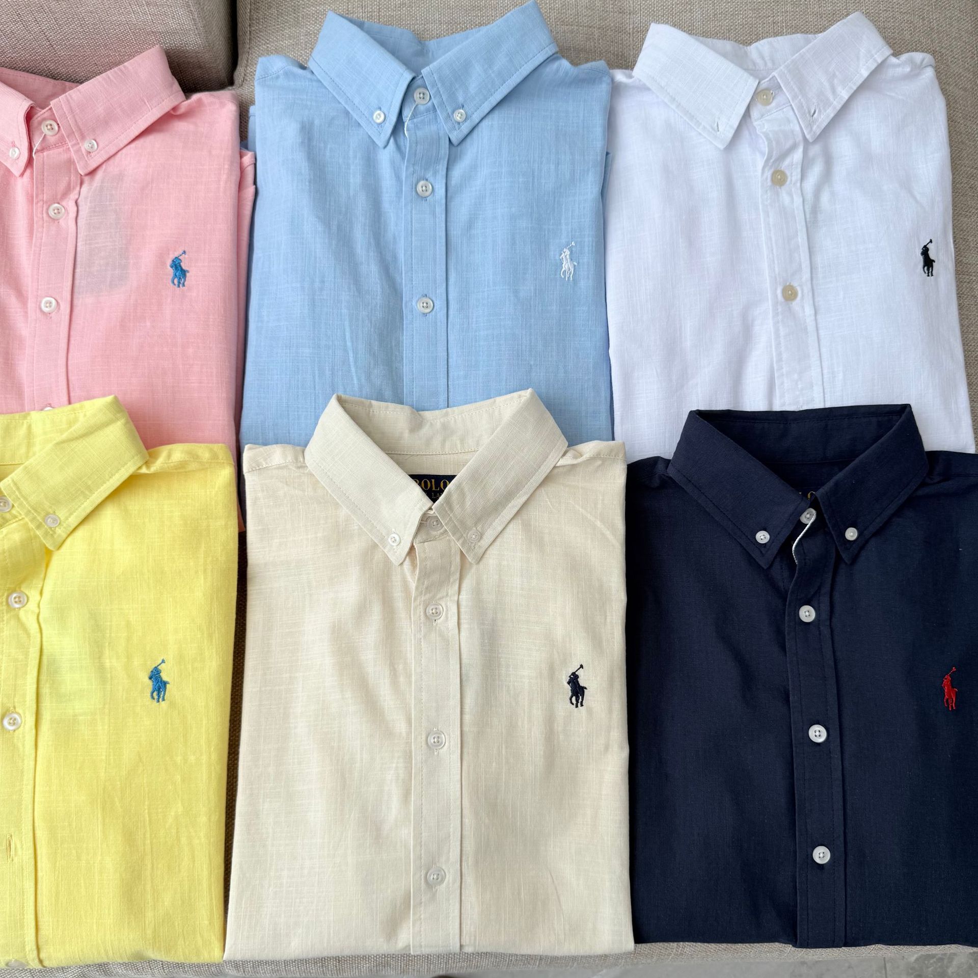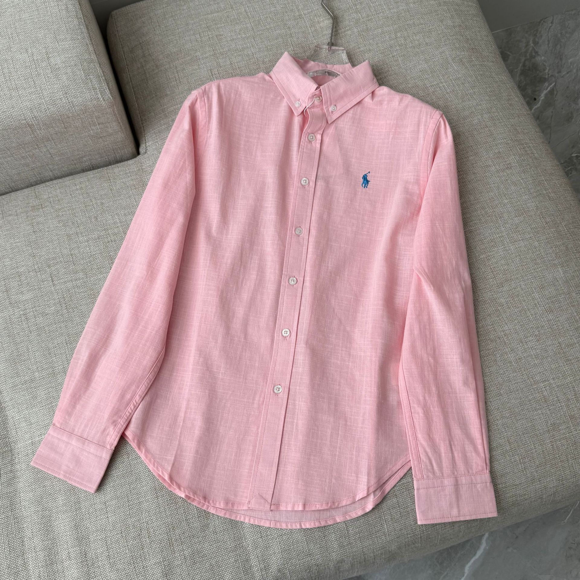 【원본 원래 라벨 스캔 가능】RL 라프 셔츠 린넨 코튼 포니 로고 자수 폴로 칼라 셔츠 여성 인기 상품스토어 가기