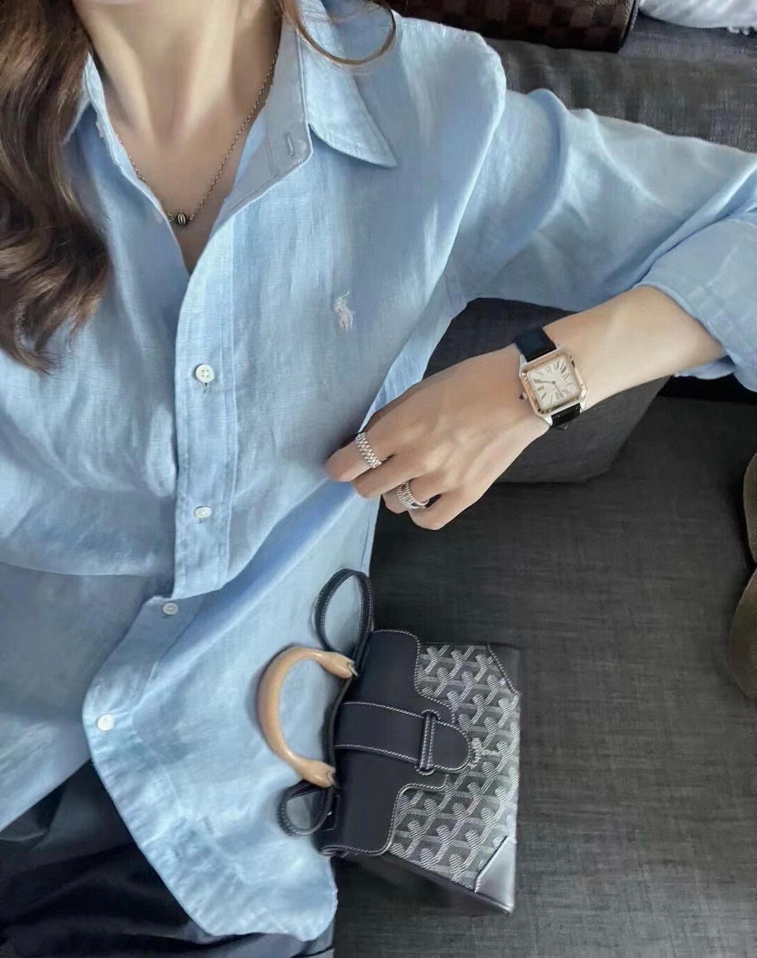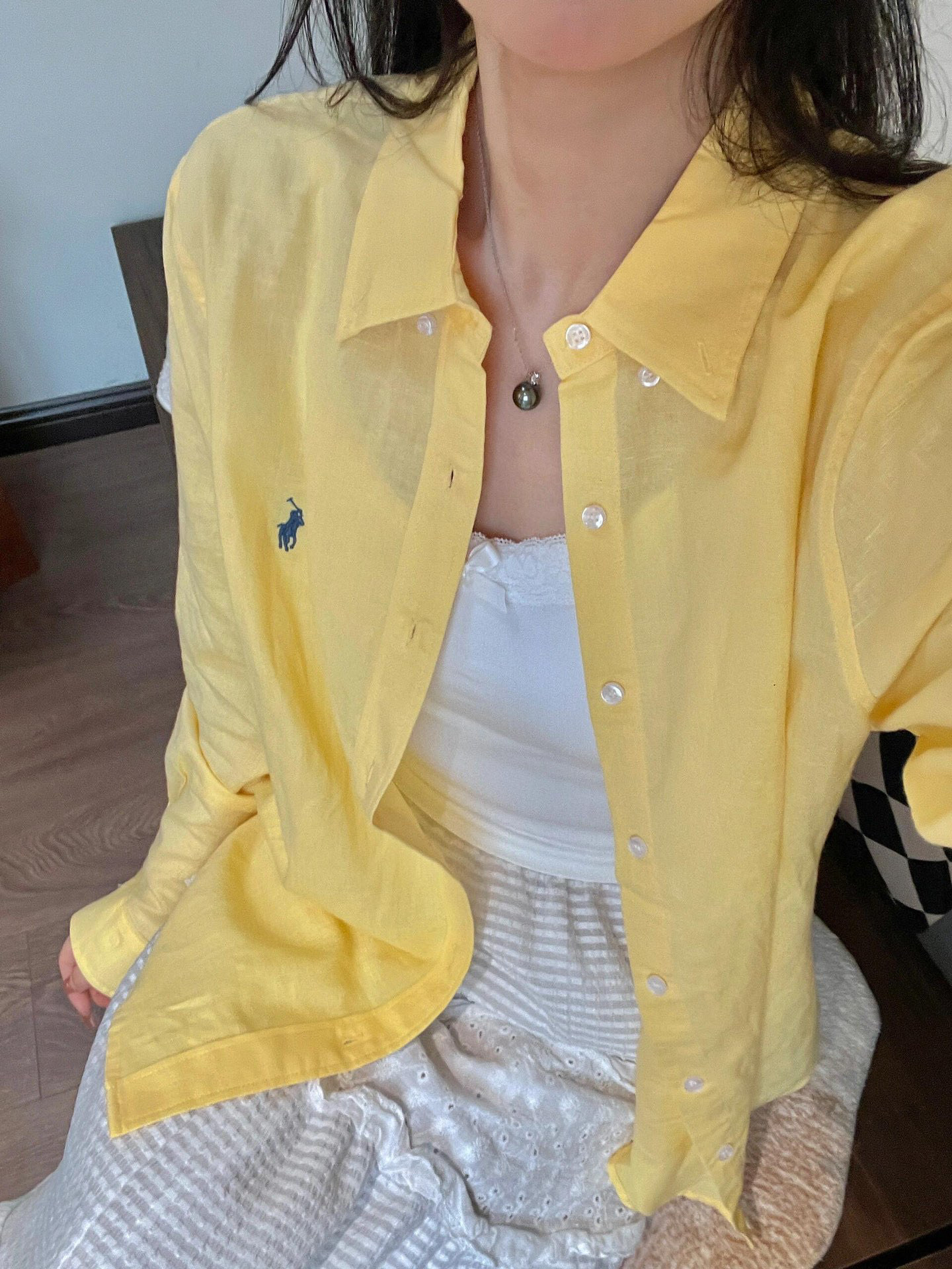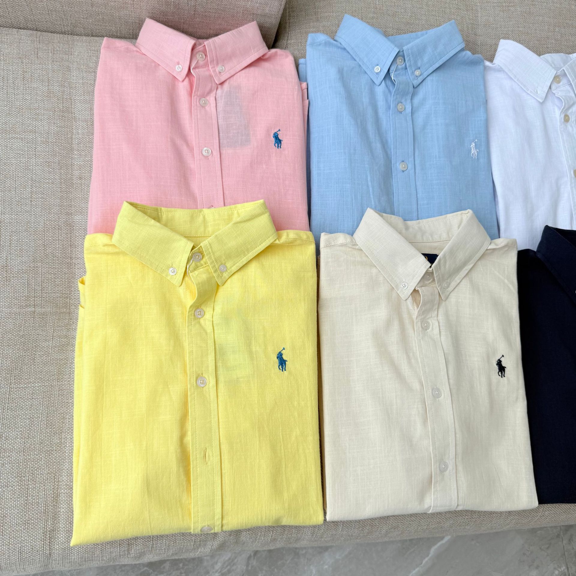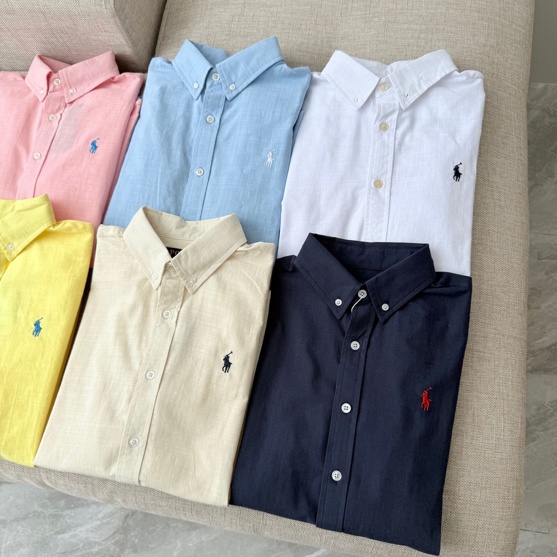 【원본 원래 라벨 스캔 가능】RL 라프 셔츠 린넨 코튼 포니 로고 자수 폴로 칼라 셔츠 여성 인기 상품스토어 가기