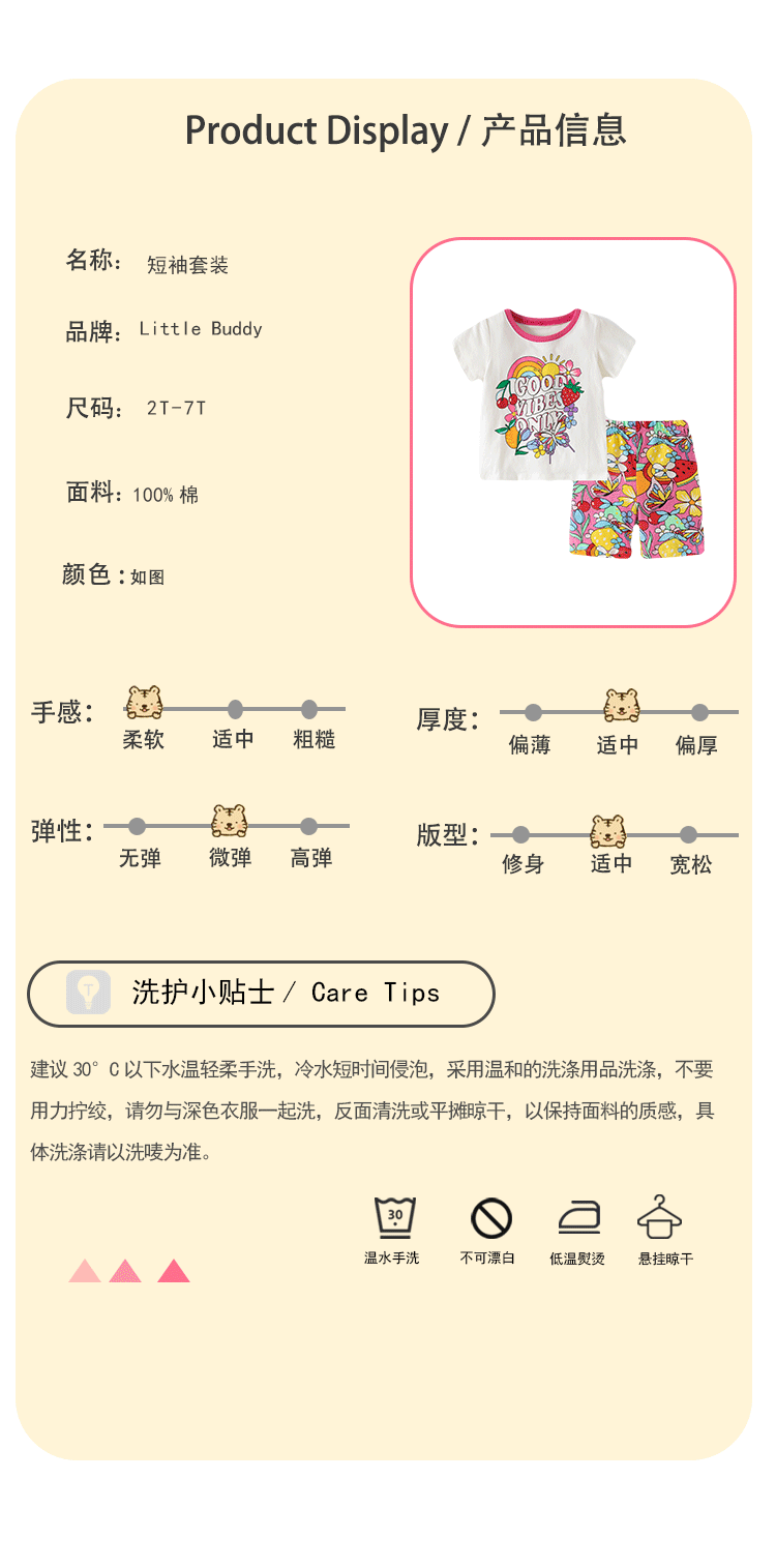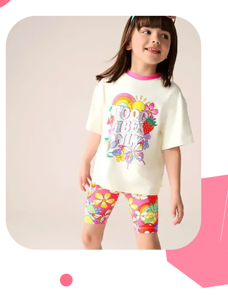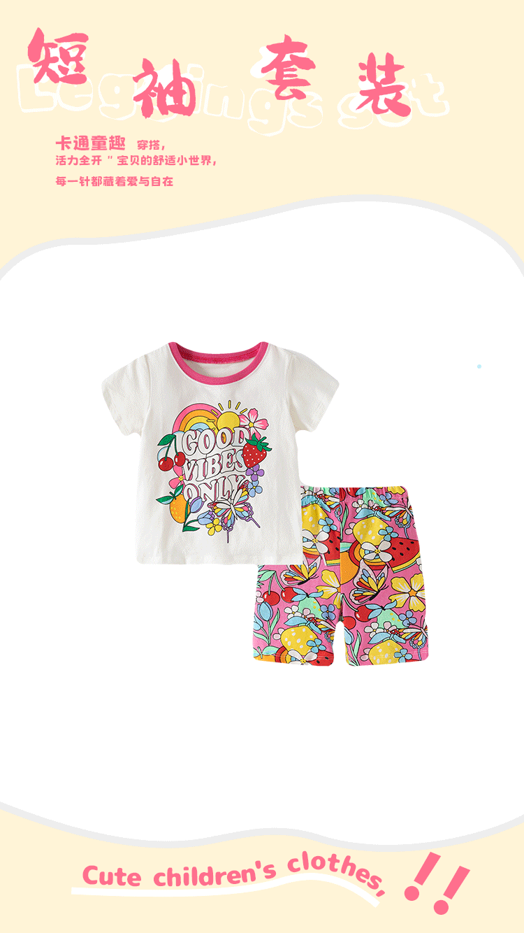 2025 봄과 여름 반팔 레깅스 정장 순수 코튼 2-7 세 소녀 정장 패션 귀여운 연인스토어 가기
