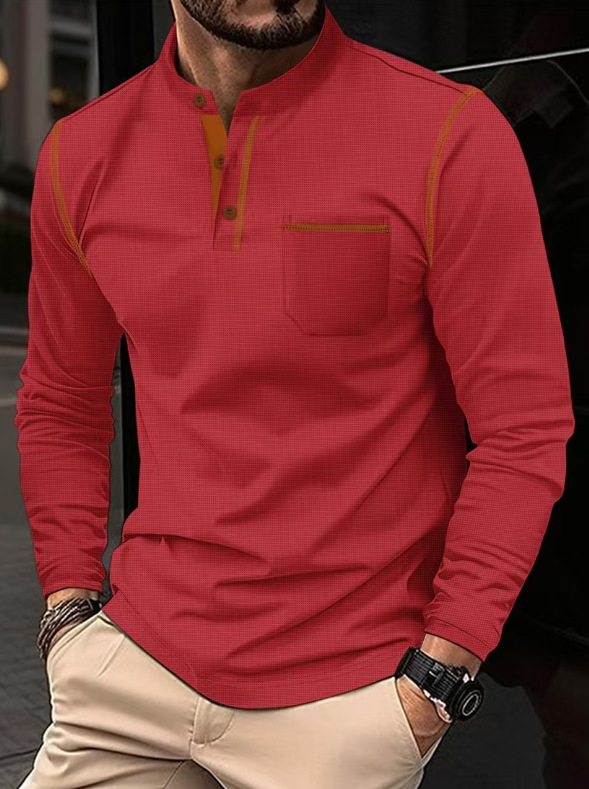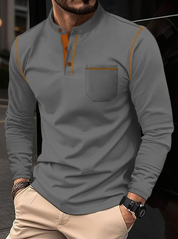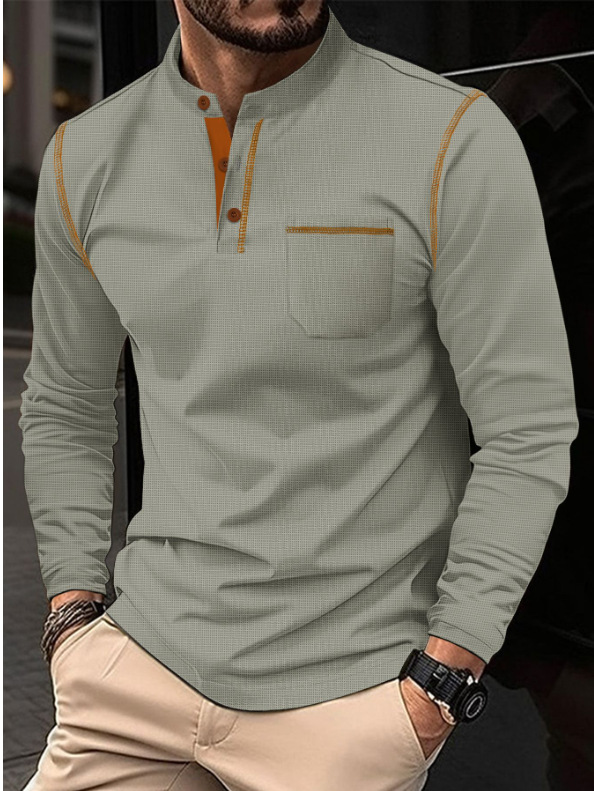 Amazon Cross-border 유럽 및 미국 2025 봄 여름 남성 긴팔 스탠드 칼라 폴로 셔츠 남성 와플 캐주얼 탑