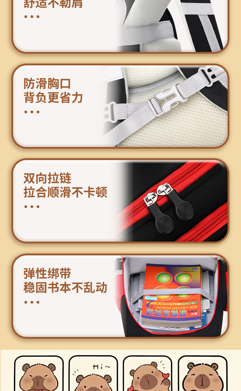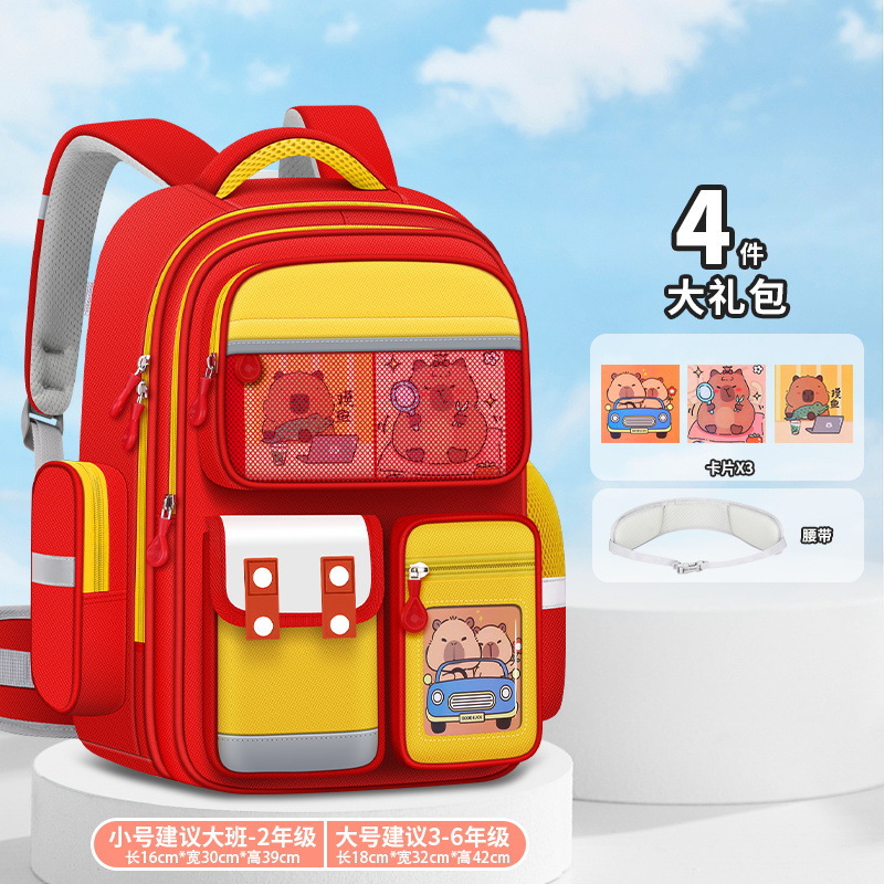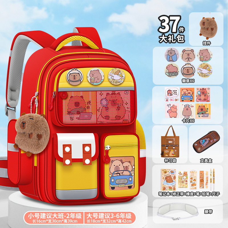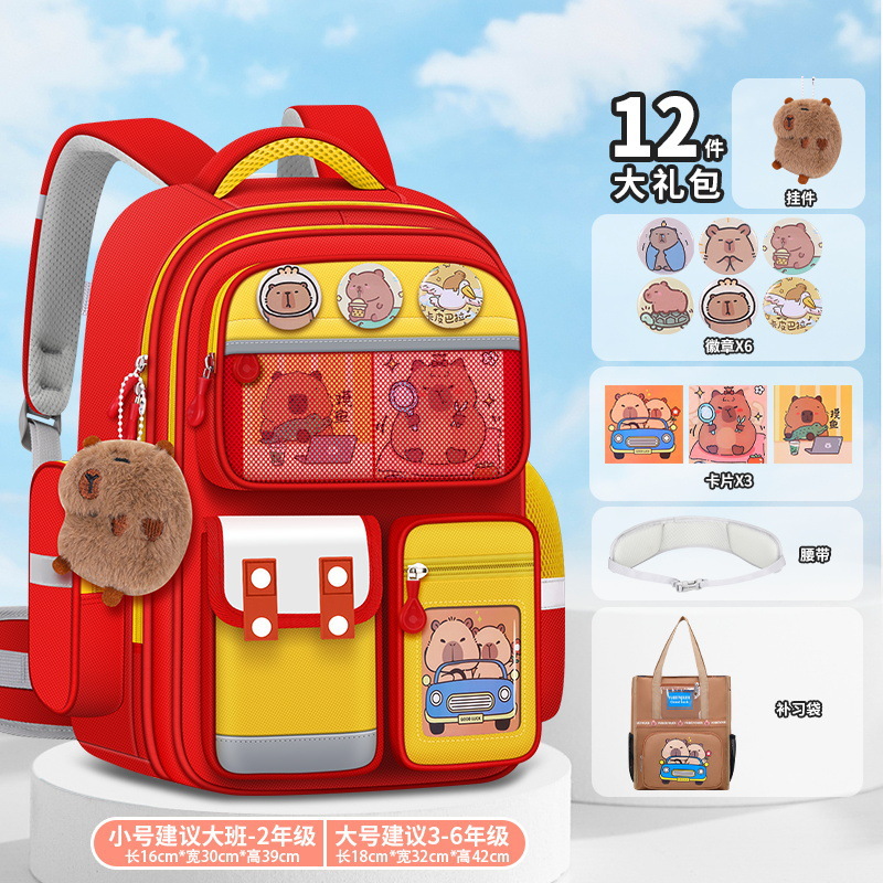 Kapibala 초등학교 가방 소년과 소녀 만화 어린이 1, 3, 6 학년 척추 보호 및 부담 감소 초경량 배낭스토어 가기