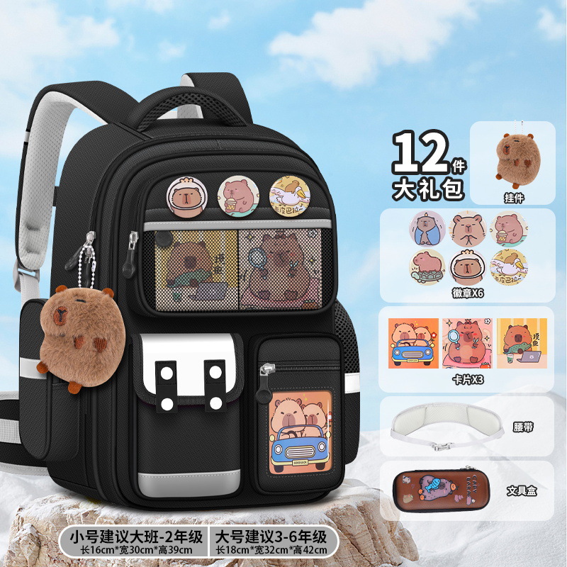 Kapibala 초등학교 가방 소년과 소녀 만화 어린이 1, 3, 6 학년 척추 보호 및 부담 감소 초경량 배낭