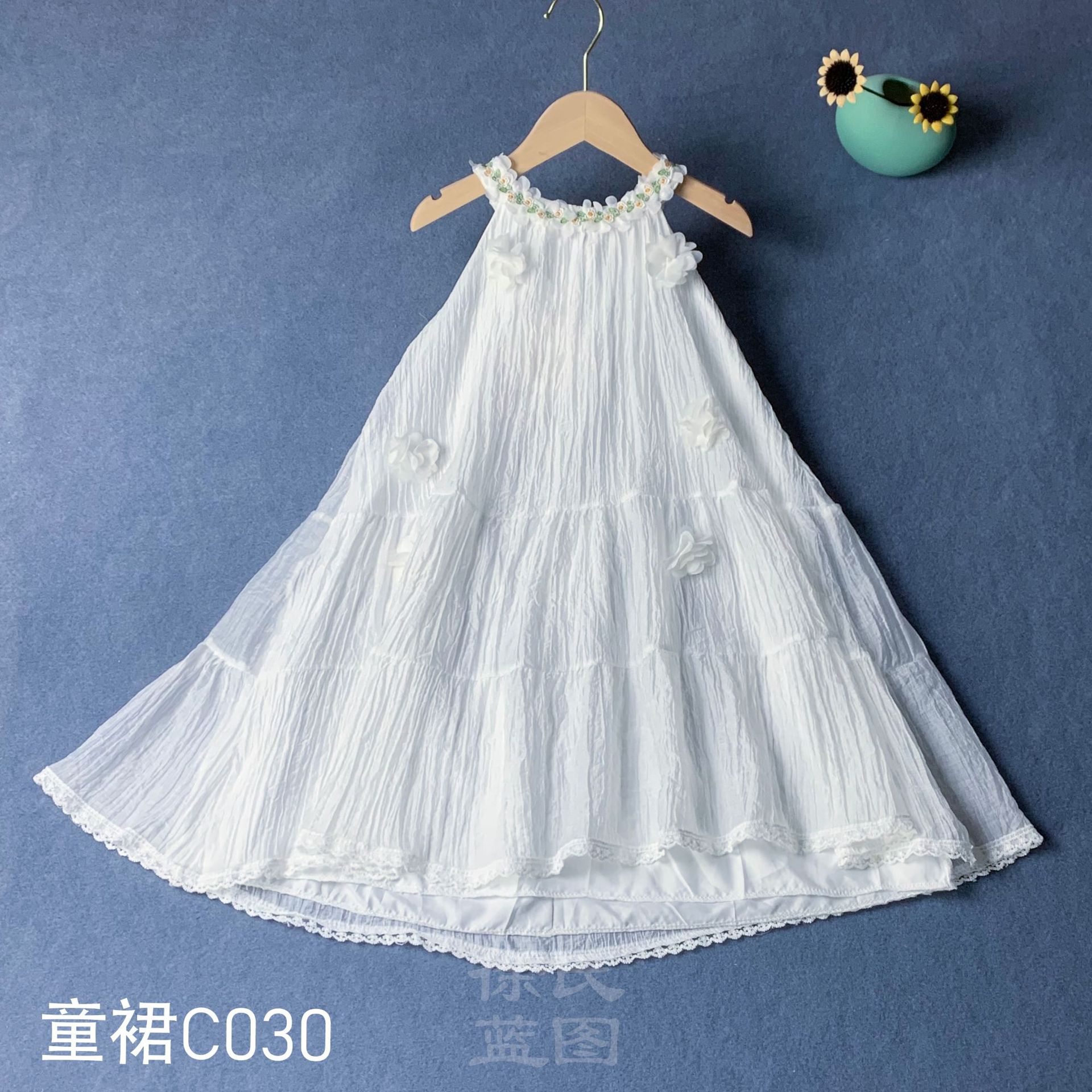 타이 염색 흰색 프랑스 소녀 흰색 드레스 여름 여행 아동복 해변 드레스 어린이 더블 레이어 홀터넥 스커트스토어 가기