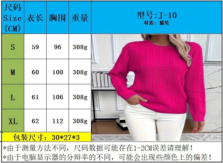 여성을위한 크로스 보더 라운드 넥 트위스트 두꺼운 스웨터 2025 가을, 겨울 여성을위한 새로운 스타일의 스웨터 솔리드 컬러 탑 바닥 스웨터스토어 가기