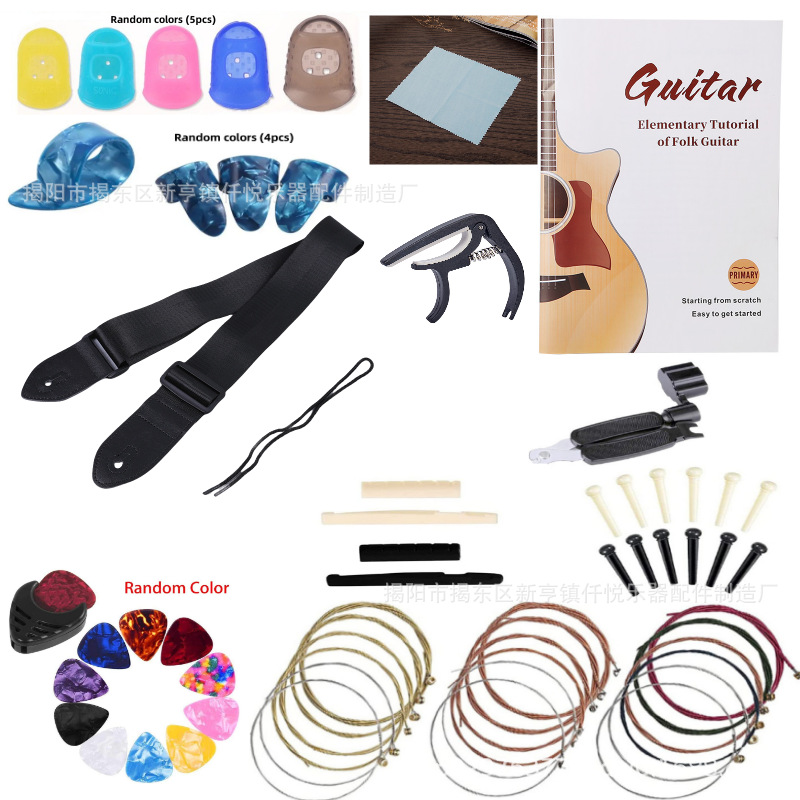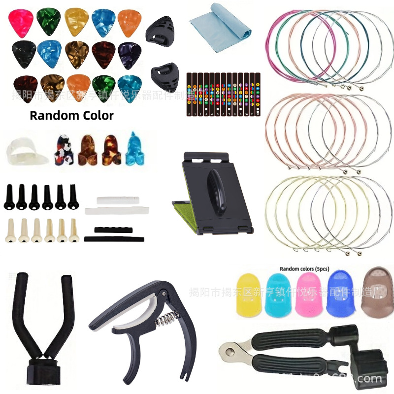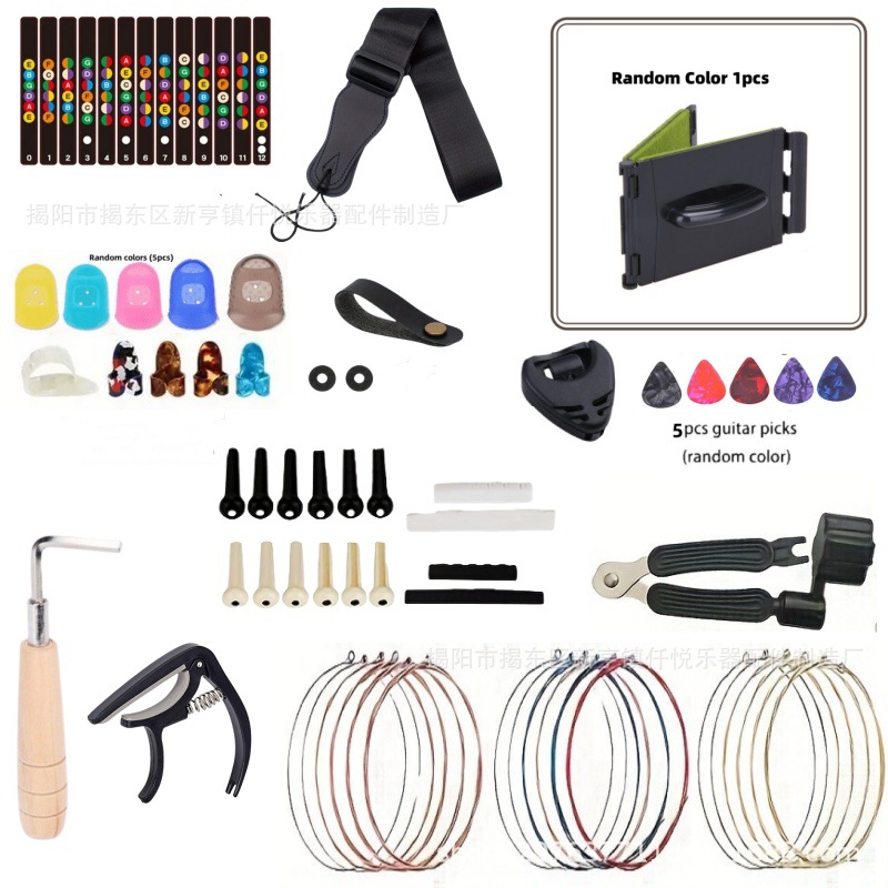 국경 간 Amazon 기타 액세서리 세트, 전체 세트, 팩토리 아울렛 스트링 세트, 핑거 슬리브 및 픽