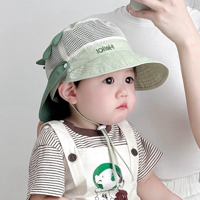아기 어부 모자 여름 소년과 소녀 목도리 태양 모자 어린이 빠른 건조 메쉬 아기 태양 보호 태양 모자 큰 챙
