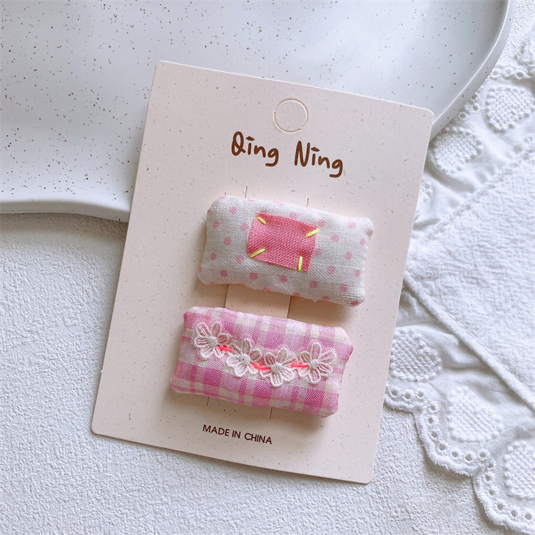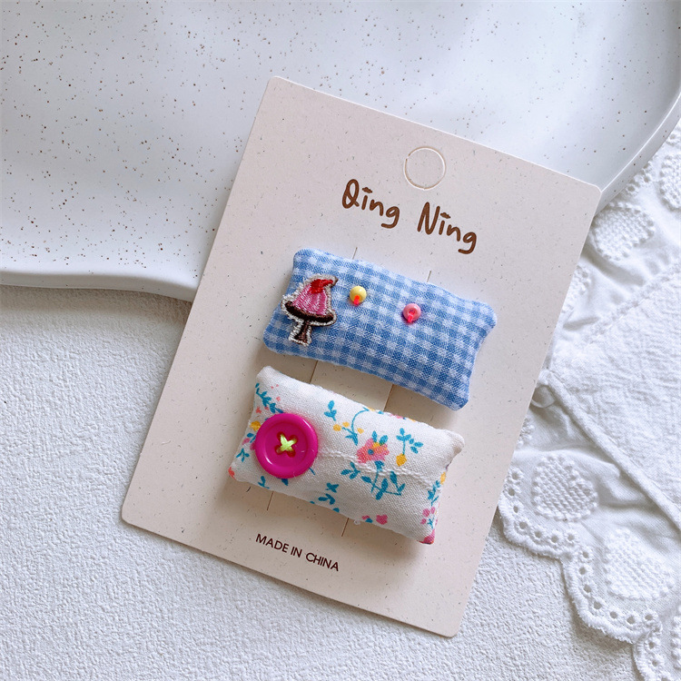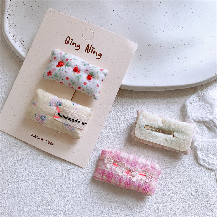새로운 어린이 면직물 격자 무늬 꽃 베개 머리핀 달콤한 소녀의 옆머리 앞머리 클립 BB 클립