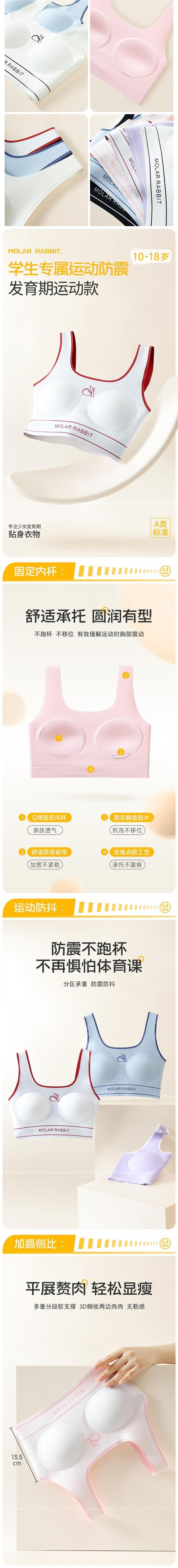 Teeth Rabbit 2개 10-18세 소녀의 발달 기간 전문 스포츠 성형 어린이 및 소녀 속옷은 사계절 면으로 착용할 수 있습니다.스토어 가기