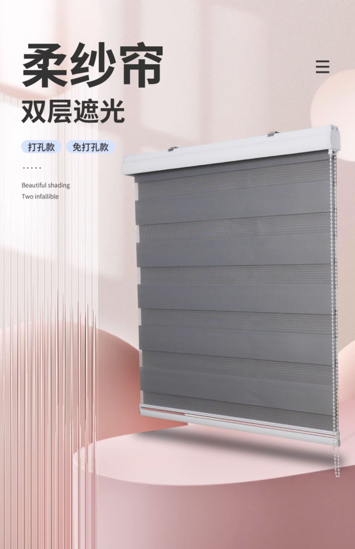 블라인드, 거즈 커튼, 암막 천, 이중 롤업 차단, 펀칭 없음, 베드룸 창, 주방, 욕실, 침실 및 사무실