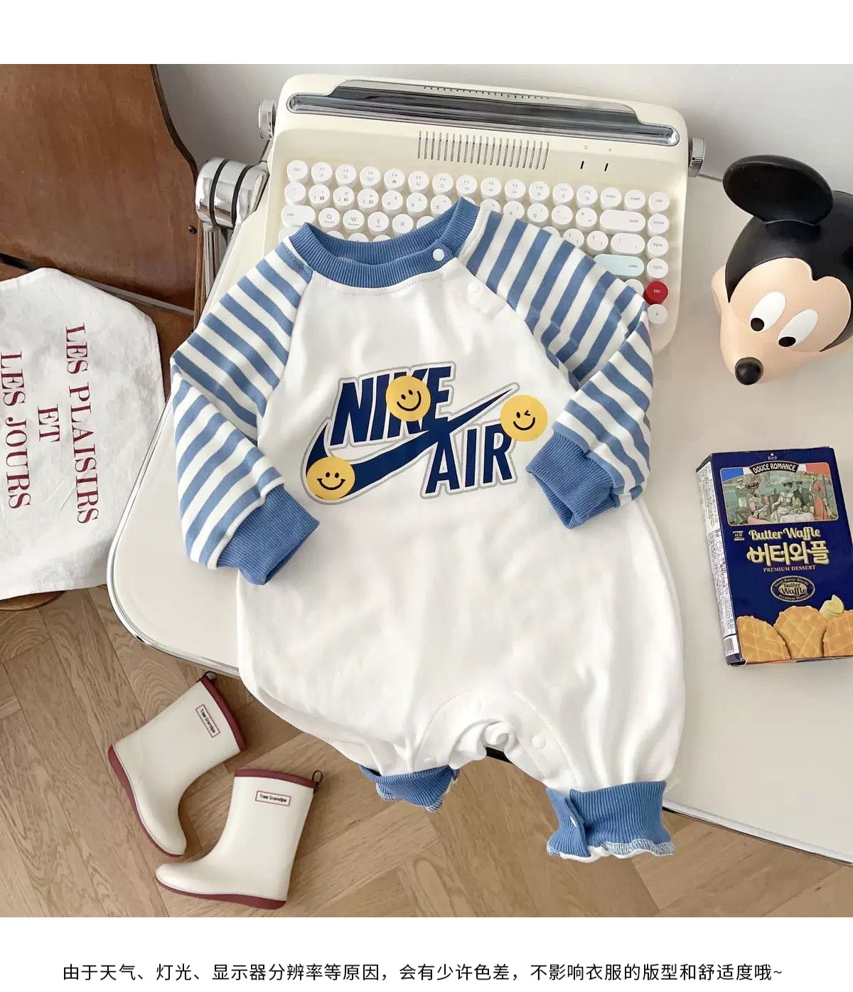 가을 신상 아기 점프수트, 한국식 슈퍼 귀여운 스플리싱 인터넷 연예인 크롤링 슈트, 외출 아기옷, 가을 신상
