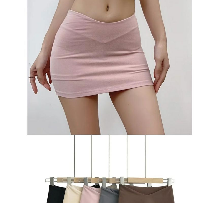 달콤하고 시원한 핫걸 디자인 로우 V 웨이스트 슬림핏 미니스커트 캐주얼하고 활용도가 높은 섹시한 힙 커버 미니 스커트