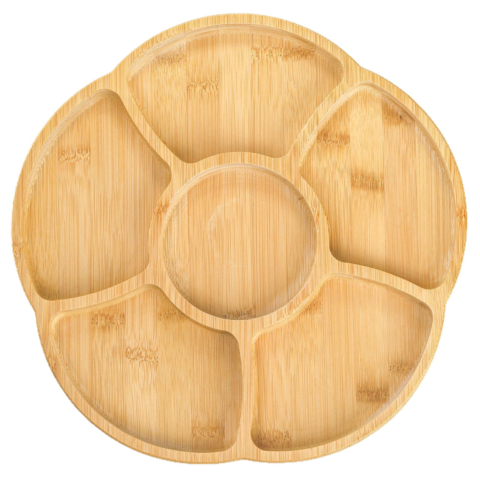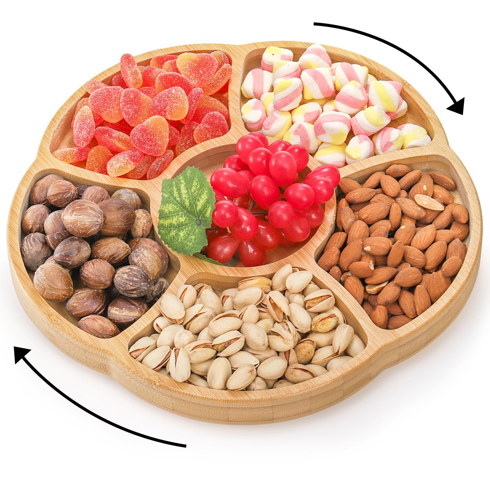 가정용 대나무 멀티 그리드 트레이 단단한 거실 과일 접시 디저트 접시 나무 회전식 말린 과일 접시 맞춤 도매
