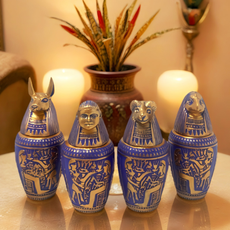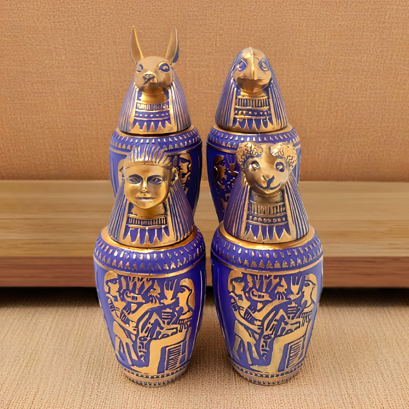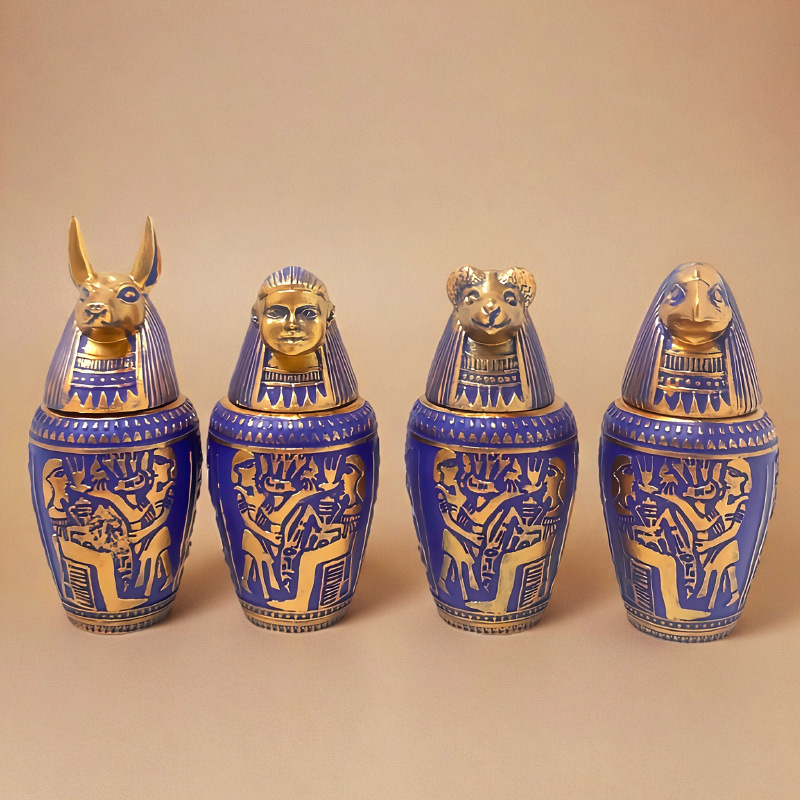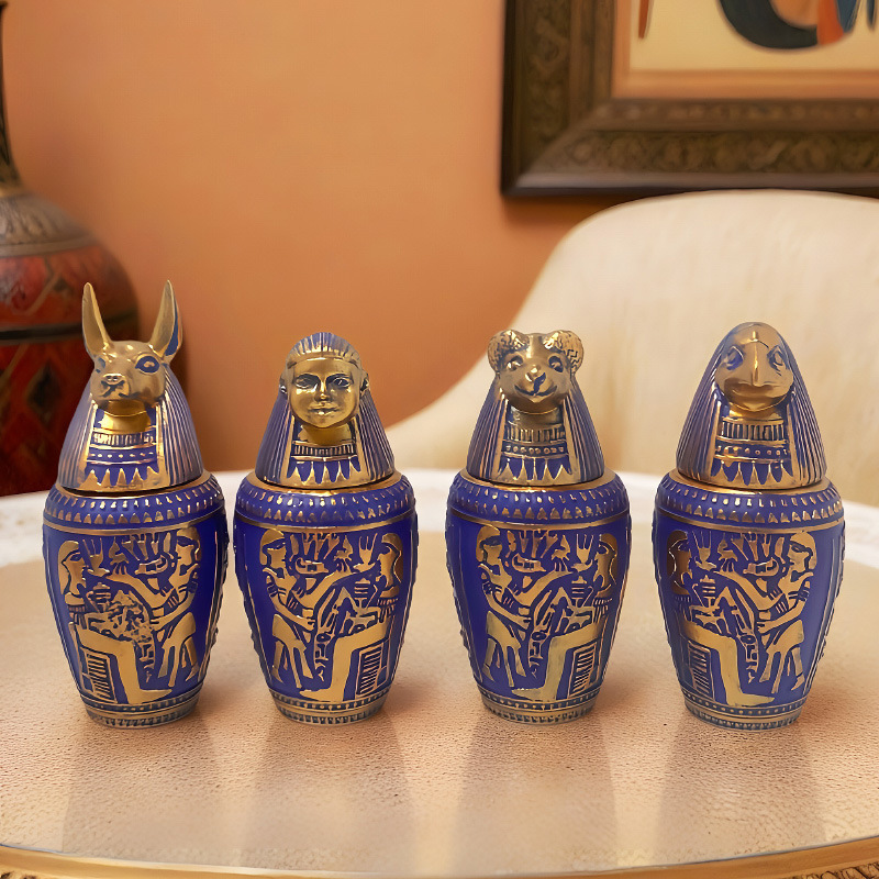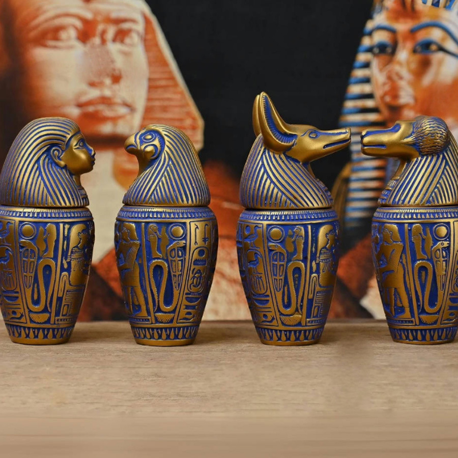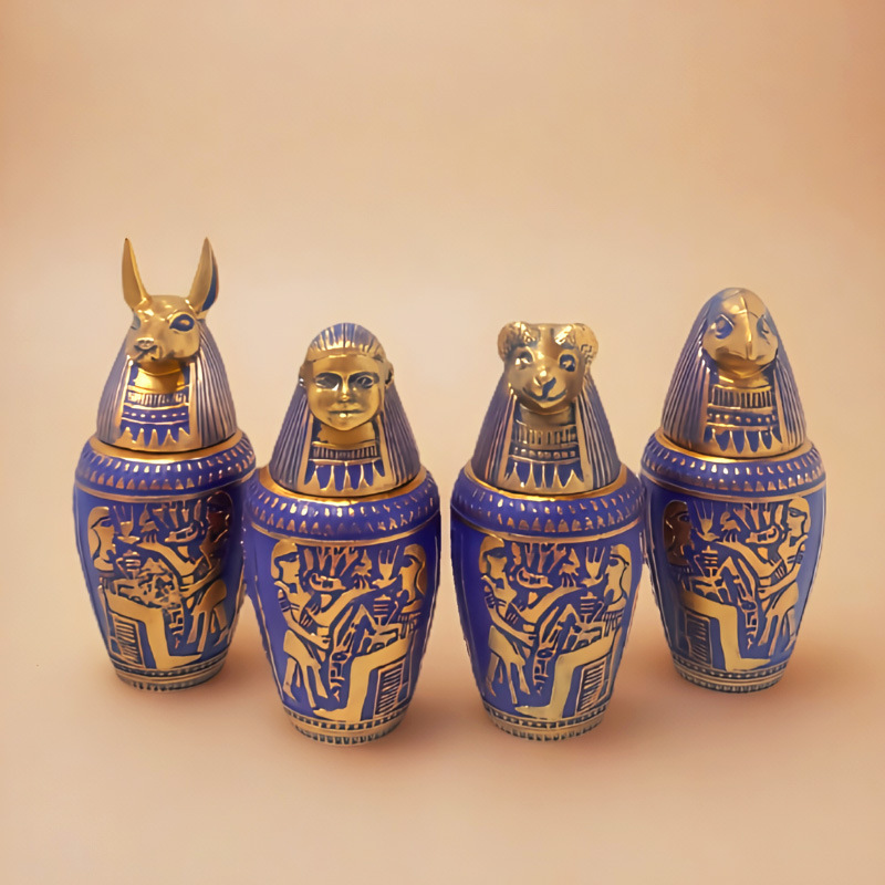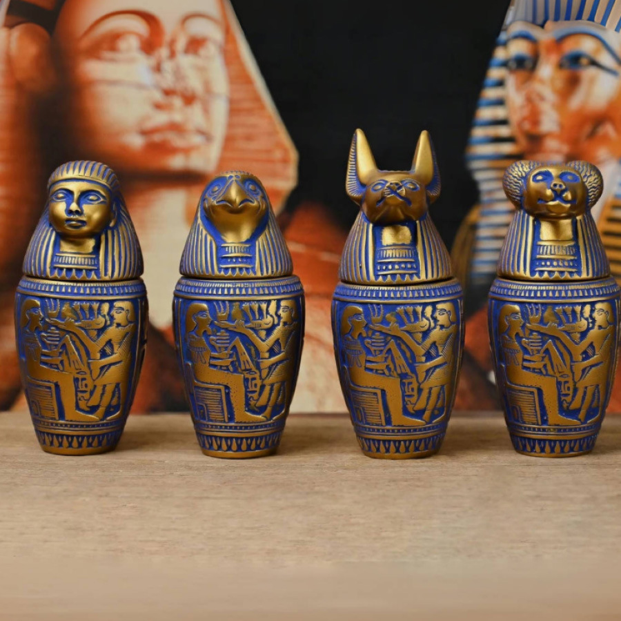 국경을 넘나드는 미라상, 고대 이집트 작은 조각상, 블루 카노피스 4종 세트